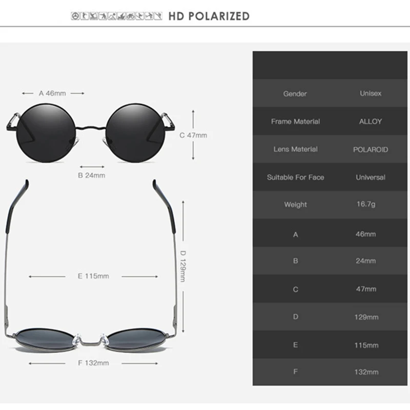 Солнцезащитные очки Мужские, женские, круглые, металлические, поляризованные