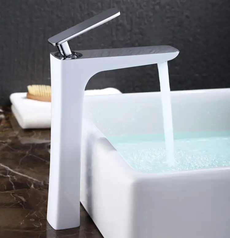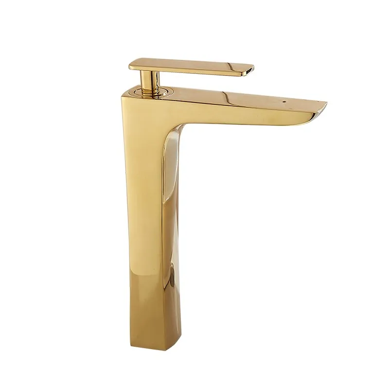 Латунный однорычажный кран для горячей и холодной воды, высокий смеситель для раковины, хромированныйзолотистый, высокий кран для раковины