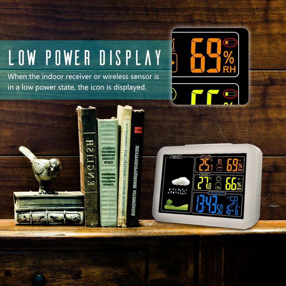 Это беспроводная погодная станция, усовершенствованная с технологией самокалибровки и точным датчиком, чтобы вытащить 12-24 часа погодных условий, удобно спланировать день с уверенностью даже без мобильного телефона или сетей!