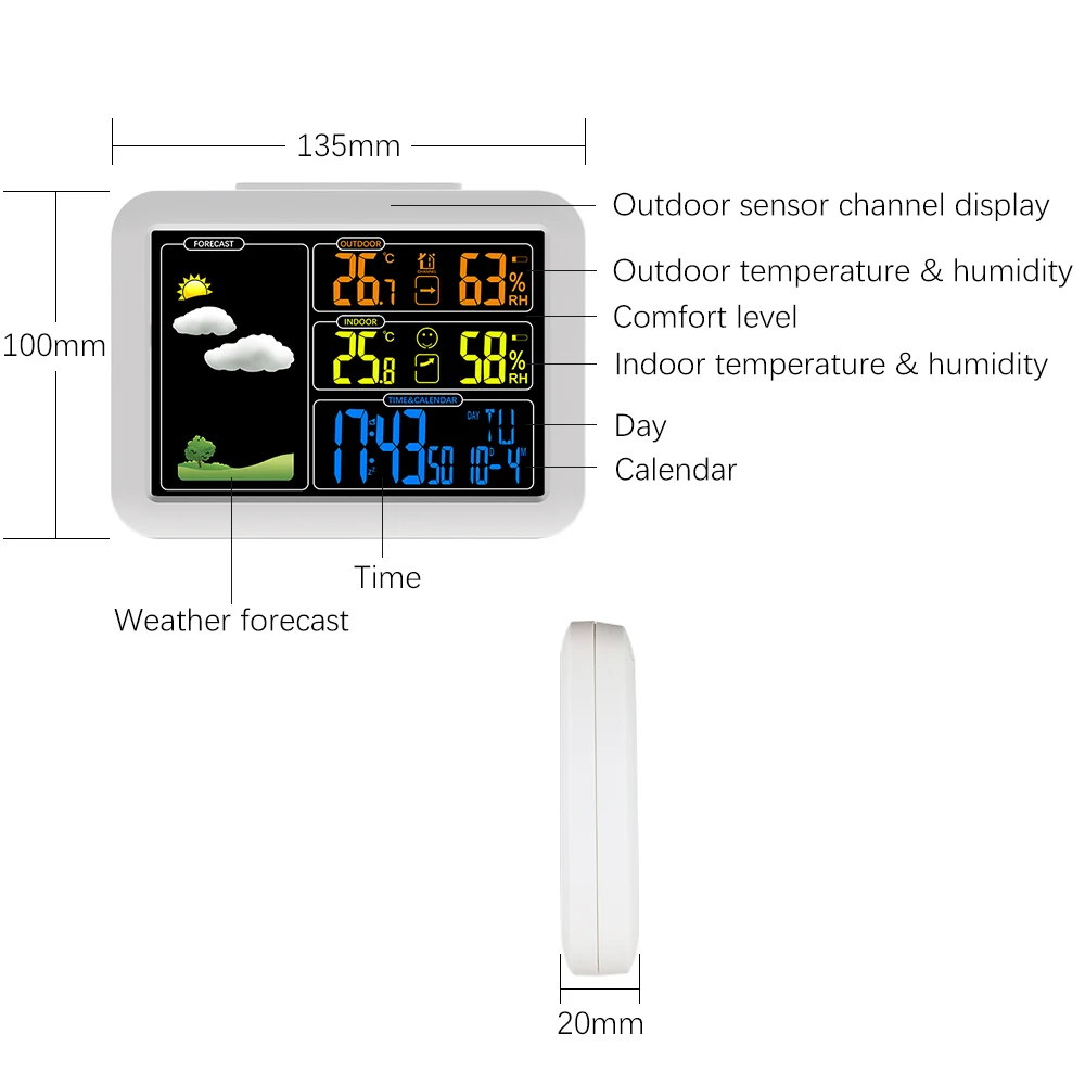 Цветной ЖК-дисплей Full HD | Время | температура ℃/humidity | влажность |, динамический цветной дисплей метеостанций солнечно/Paetical sunny/Облачно/дождливо.