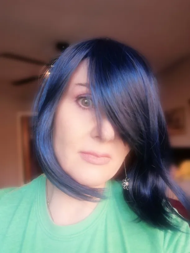 Парик прибыл быстро и в прекрасном состоянии. Продавец упаковывает его в коробку и добавляет в Бесплатный парик. Волосы мягче, чем мои другие парики. Кружево очень часто плетается. Если вы держите его до света, вы можете увидеть зазоры света. Цвет потрясающий. Красивый черный/синий. Выглядит очень синим с крупным планом. Стиль отличный. Челка очень длинная, хорошо подметает или можно подрезать. Парик регулируется. Некоторые очень короткие волосы под челкой, которые я могу удалить. У парика есть небольшой удар в нижней части спины волос, который будет лучше подходить, как только у меня будут заколки для волос. Это муже нравится. Спасибо замечательному продавцу за отличный парик! # Парик # парики # мода # Косплей