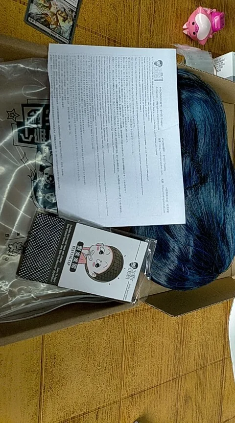 Коробка была немного поломанной, но товар полностью цел, в нем лежал подарочек и сам парик, а также сетка для волос. Парик к сожалению не могу сейчас сфотографировать, но поверьте, он там есть) Изначально не понял как правильно одеть,но спустя время все стало на свои места. Товаром полностью удовлетворен, годен для качественного косплея, а также для повседневной жизни. В будущем закажу именно у этого продавца. p.s все-таки не поленился сфотографировать)