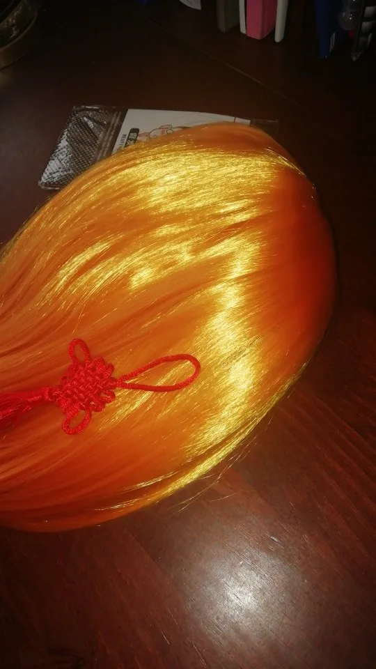 bonne qualité, arrivée dans les temps , douce et brillante , couleur correspond bien (parfaite pour faire Kurapika) , stylisation à faire , bon emballage et présentation