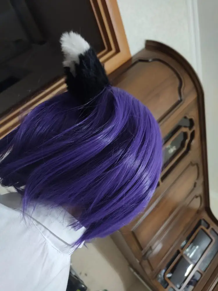 Парик очень мягкий и очень красивый: это смесь фиолетовых и черных волокон. Все произошло очень быстро и аккуратно упаковано в картонную коробку. Идеально!