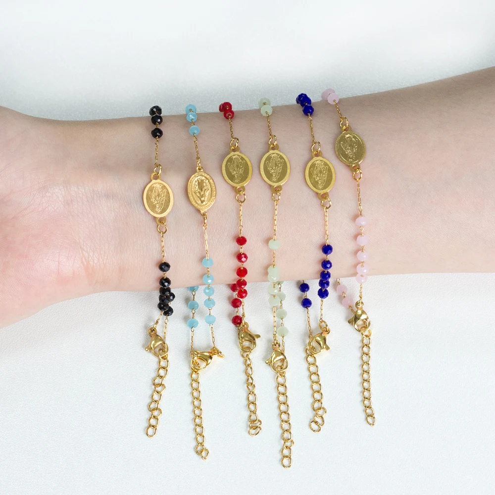 : LUXUSTEEL черныйкрасныйрозовыйсинийсветильник зелеными кристаллами ручной работы из бисера браслеты из нержавеющей стали удлиняющаяся цепочка браслеты для мужчин и женщин
