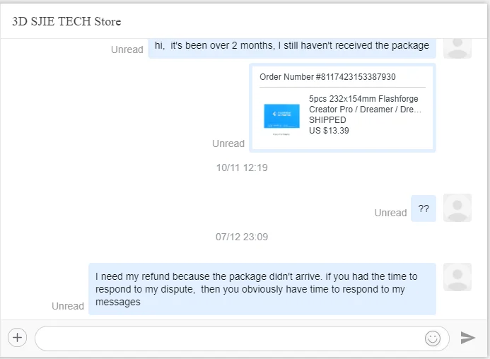 Мой товар был доставлен в Toronto, но не прибыл на мой домашний адрес в Виннипеге. Я открывал спор, и aliexpress отклонил его, потому что продавец сказал им, что посылка прибыла (в Toronto, а не в Winnipeg). В основном они украли мои деньги. Я подал заявку на результат диспута, но прошло более 2 недель, и никакого прогресса сделано не было. Я не рекомендую покупать у них, они-обманщики. И когда вы свяжетесь с продавцом, они даже не ответят вам и просто игнорируют все ваши сообщения.