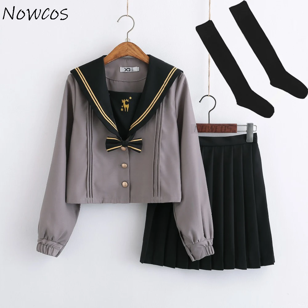 Новое поступление 2022, японские комплекты JK, школьная форма для девочек, с вышивкой оленя, весна-осень, для старших классов, Женская моряка