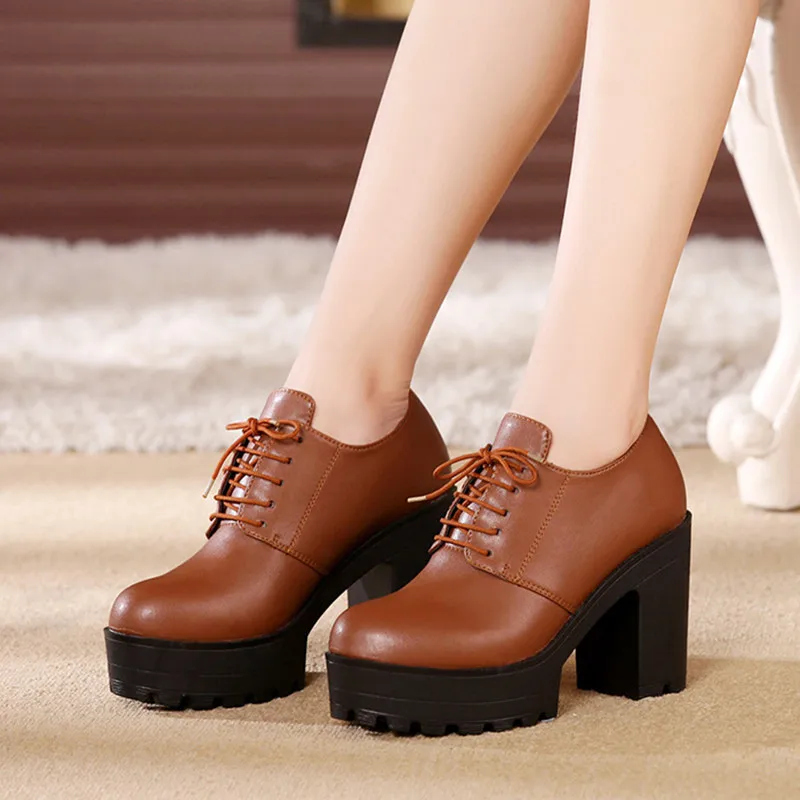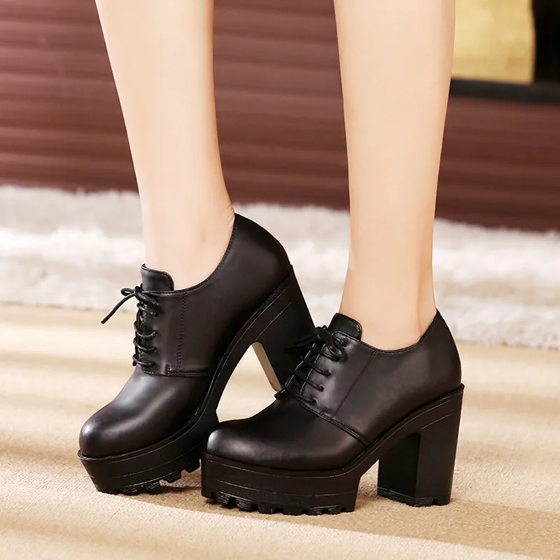 Туфли-лодочки женские из натуральной кожи, на блочном каблуке, на платформе