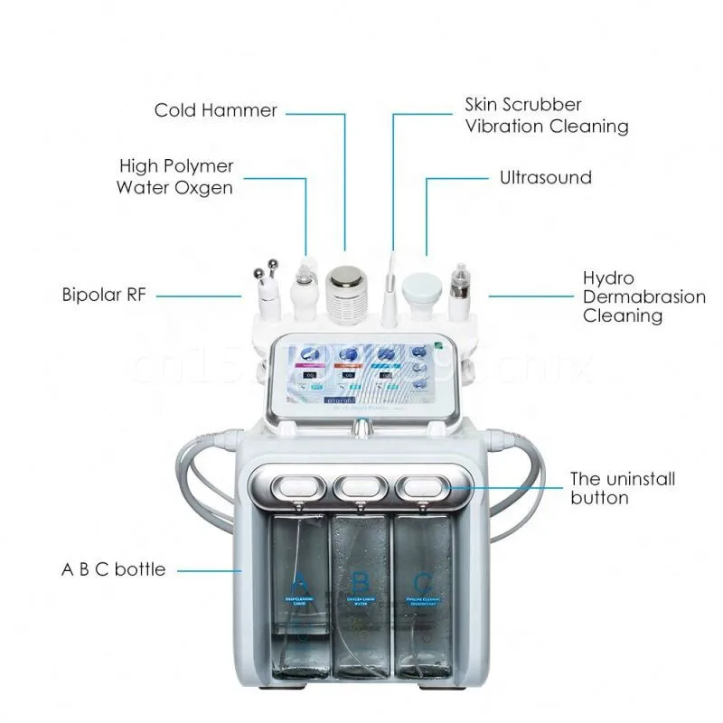 Применение:1) Ультразвуковая головка: стимулирует микроциркуляцию, омолаживает кожу2) многополярный RF: компактная форма, подтяжка лица3) био-микроток: дайте растянуть линию челюсти, био Поднимите общее затягивание кожи лица4) гидродермабразия: Очищение лица, пилинг, очищение пор5) холодный молоток: холодная кожа после интенсивной обработки6) кислородный пистолет-распылитель: омоложение кожи