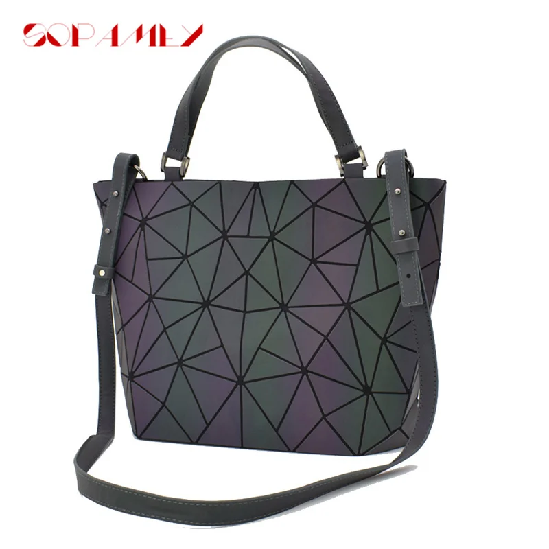 Светящаяся Сумка-тоут для женщин, женский складной саквояж на плечо с геометрическим узором и стразами, лазерная простая Складная Сумочка с голограммой, кошелек, 2021