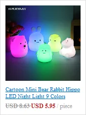 Сова Птица Бегемот светодиодный Ночной светильник сенсорный Сенсор 9 Цвета силиконовые животных Ночная лампа для спальни ночники для детей Дети Подарок для ребенка