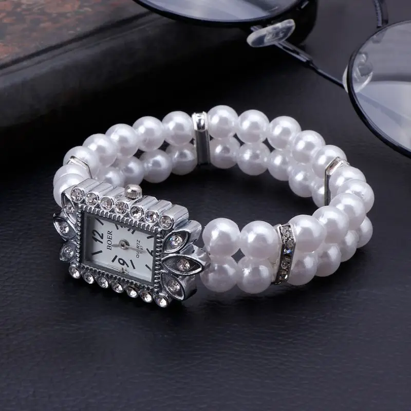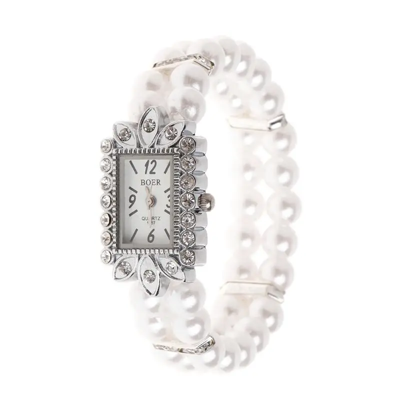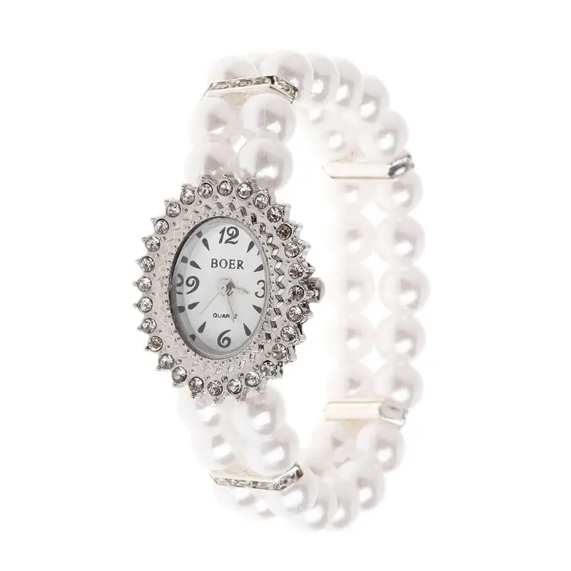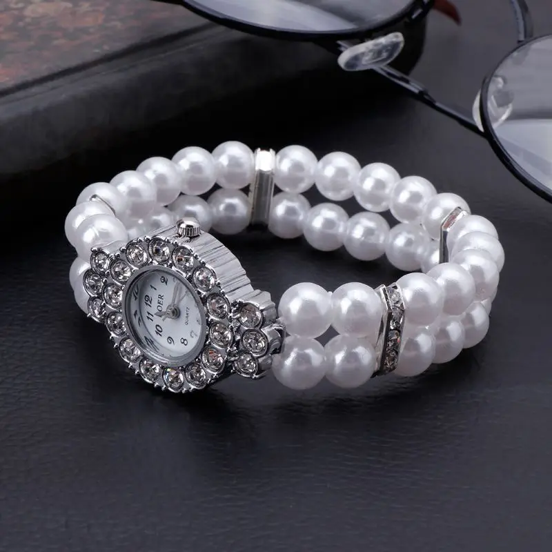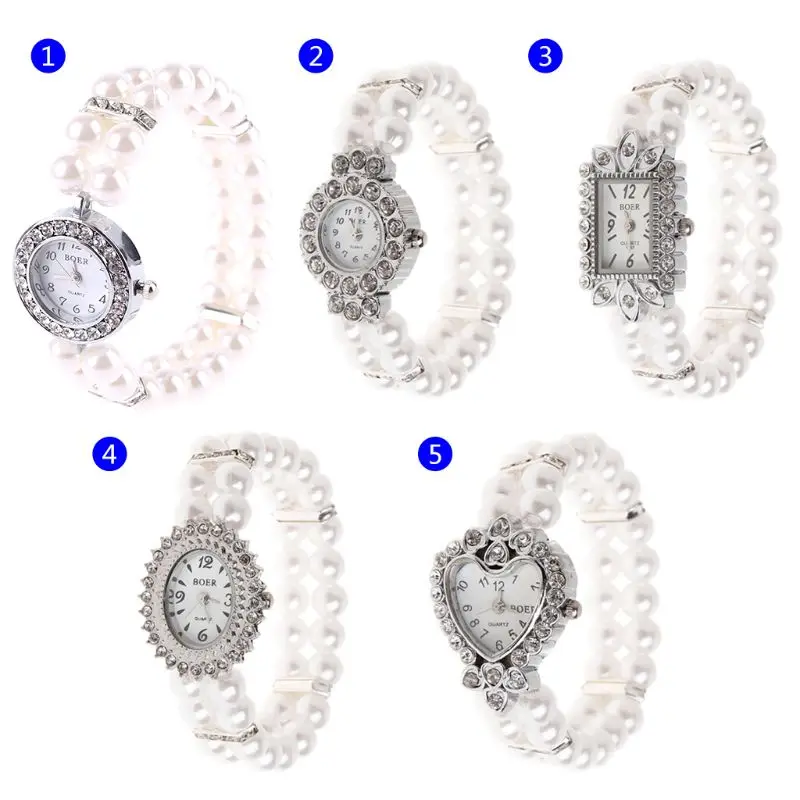 Эти часы специально разработаны для женщин, роскошный дизайн, имитация жемчуга и стразы.