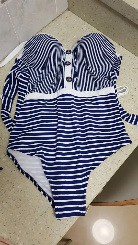 купальник хорошего качества,очень плотный.Девушкам с округлыми бёдрами,надо заказывать с осторожностью,т.к.полоски зрительно увеличивают низ.Немного тянет,об этом писали предыдущие коментаторы.