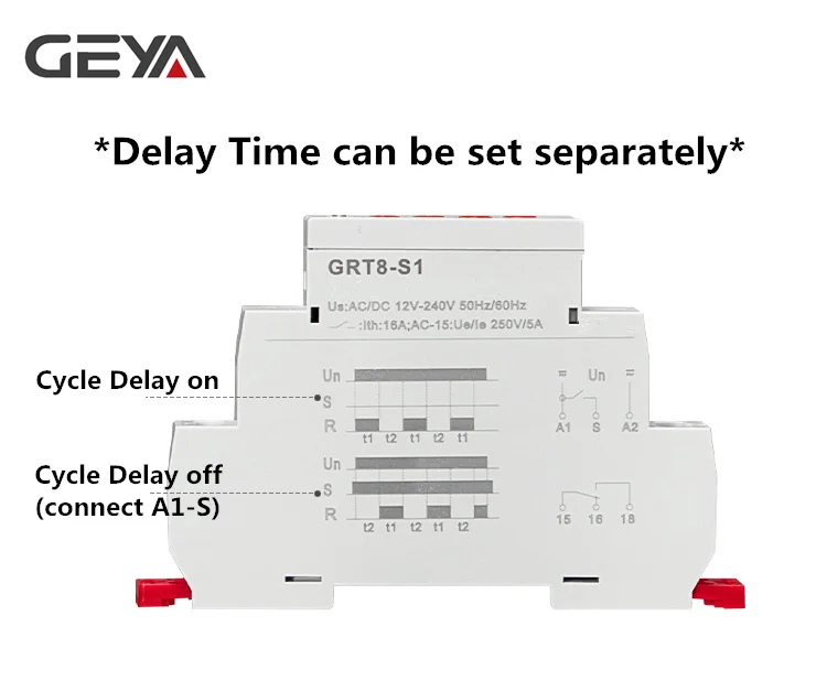 Реле времени цикла GEYA, регулируемое реле переменного тока 220 В 16 А переменного токаDC12V-240V повторное реле, реле времени SPDT, электрическое защитное асимметричное реле времени