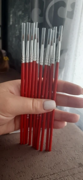 Кисти качественные. Посылка пришла быстро. Кисть имеет тонкий кончик, эластичная. Хорошо прорисовывает изящные мазки. Спасибо.