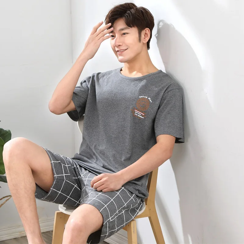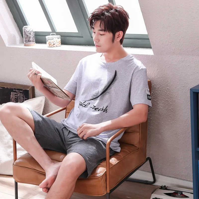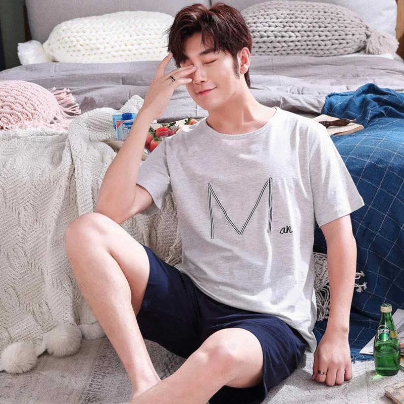 Повседневные полосатые хлопковые пижамы наборы для мужчин 2019 летняя футболка с короткими рукавами, одежда для сна, Мужская пижама домашняя пижама Hombre одежды для отдыха