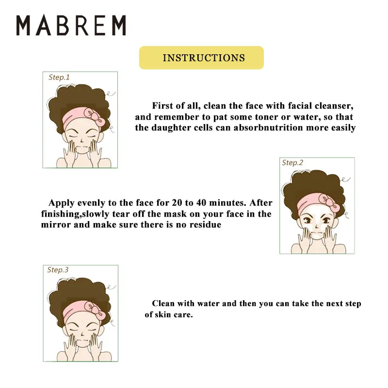 1. После очищения и тонирования нанесите правильное количество на лицо (Избегайте губ вокруг глаз).2. Нанесите его в течение 20 минут или около того, пока питательные вещества не будут поглощены, затем снимите текстуру кожи снизу вверх, а затем намочите краску водой.3. Рекомендуется использовать 2-3 раза в неделю.