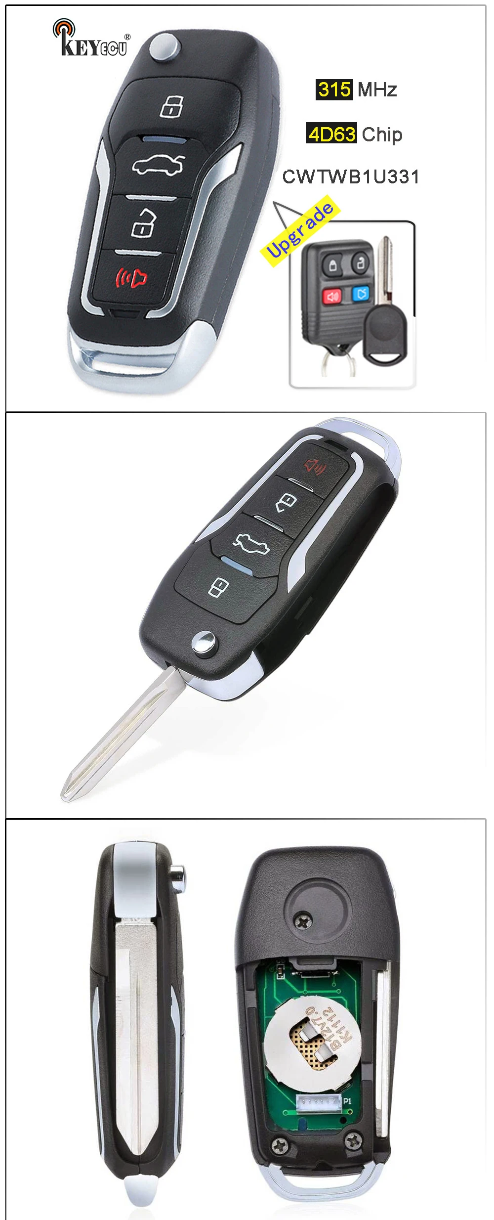 Улучшенный пульт дистанционного управления KEYECU CWTWB1U331, 315 МГц, 3 + 1 4 кнопки для Ford Explorer, Lincoln Town Car LS, Mercury Соболь