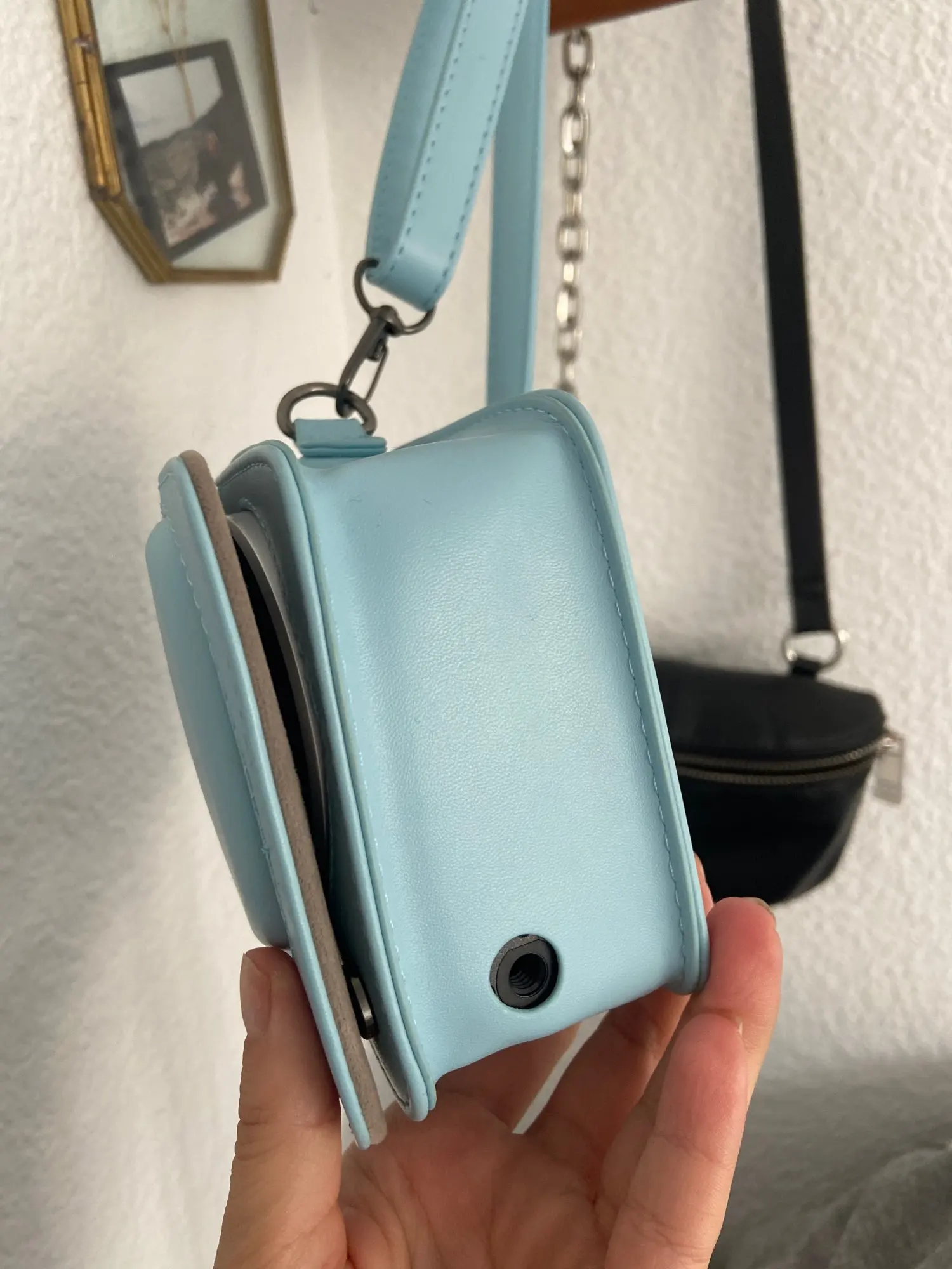 Маленькая защитная сумка Слишком милая и идеально подходит для Fujifilm Instax Mini 70! Я люблю тот факт, что мы можем удалить «верх» из обложки и сохранить защиту дна при съемке! Быстрая доставка.