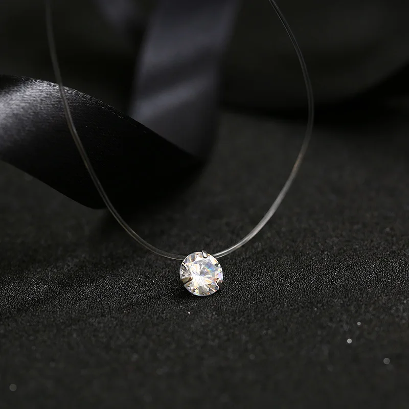 Новинка 2022, Женское Ожерелье FSUNION из прозрачной лески серебряного цвета, ожерелье из невидимой цепочки, Женское Ожерелье-чокер Стразы