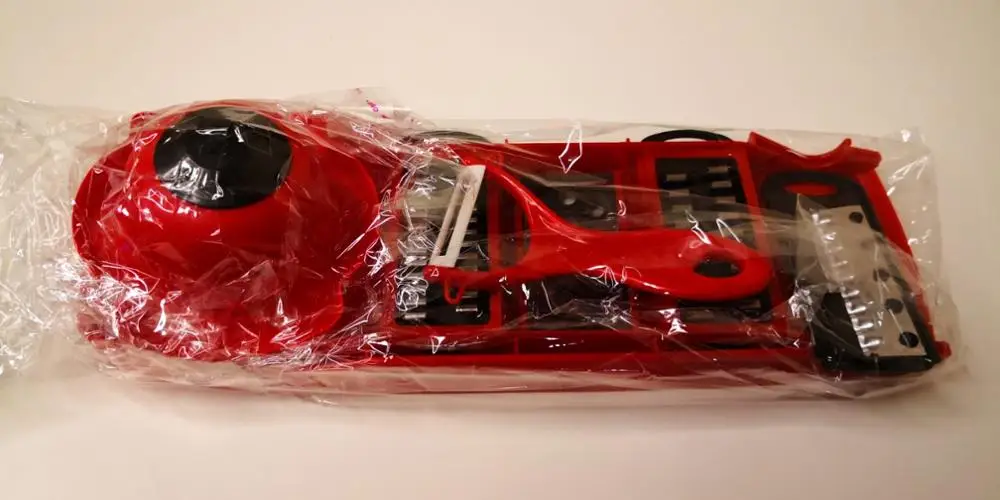 Безупречная упаковка; Получено менее чем за 15 дней во Франции; Еще не проверено, но пластиковая коробка восстановления кажется хрупкой; Жаль, что в упаковке нет инструкции, используемых для каждого кусочка