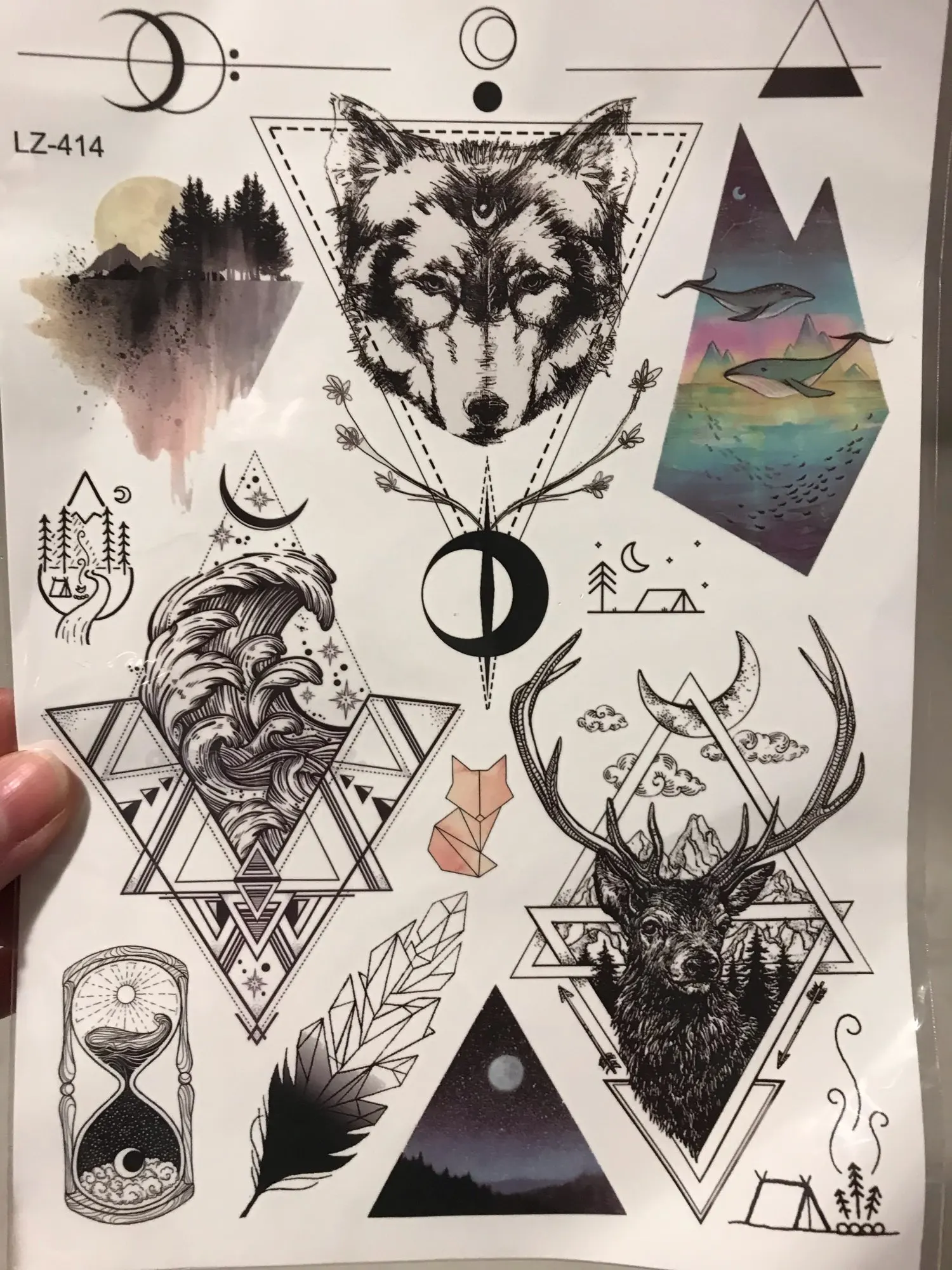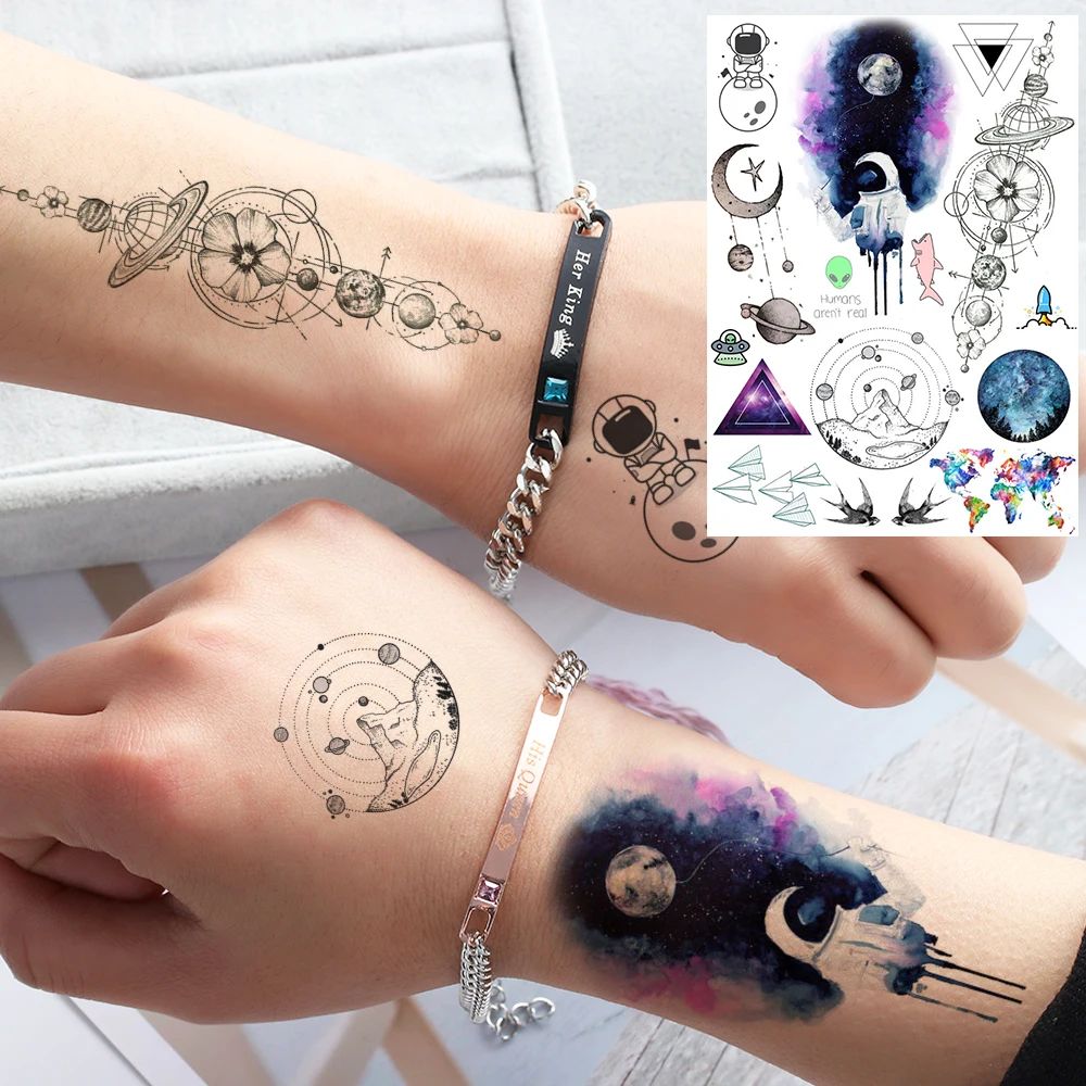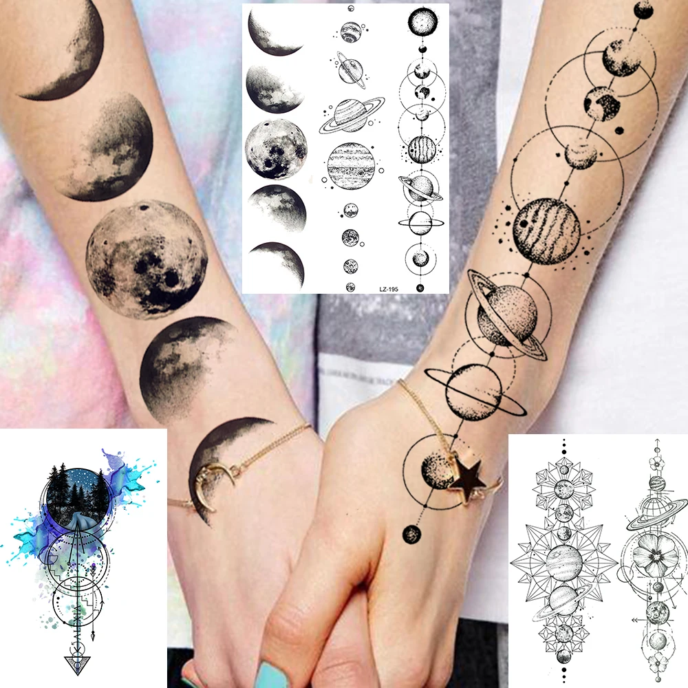 Переводная 3D татуировка, звезда, черная планета, дерево, временные татуировки для детей, женщин, мужчин, волк, Лев, дерево, татуировки для предплечья, тела, руки