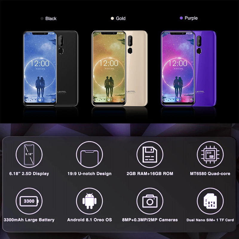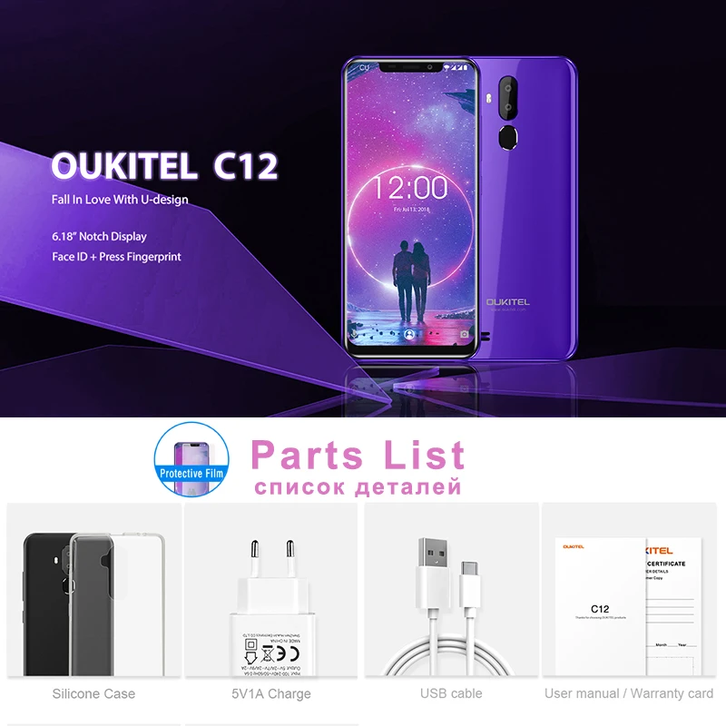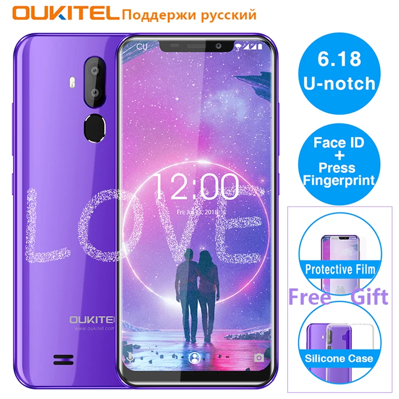 OUKITEL C12 6,18 "Android 8,1 мобильный телефон MT6580 четырехъядерный 2G RAM 16G ROM отпечаток пальца 3G 3300mAh смартфон Face ID
