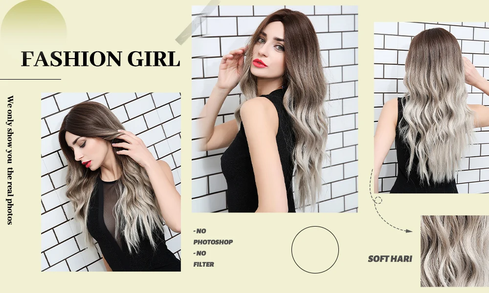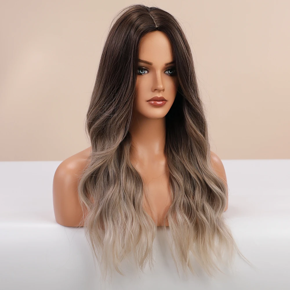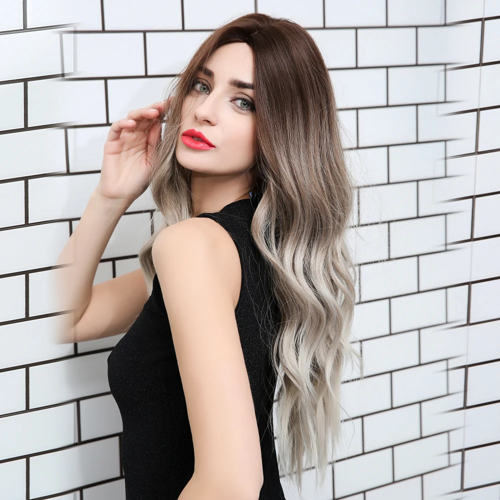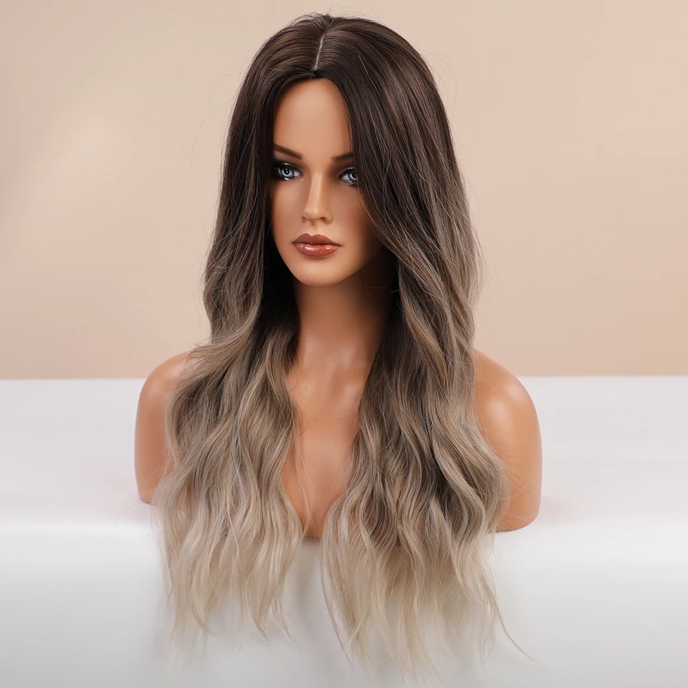 ESIN синтетические волосы темные корни Омбре светильник лые длинные парики для женщин естественные волны с челкой ежедневная бесплатная доставка
