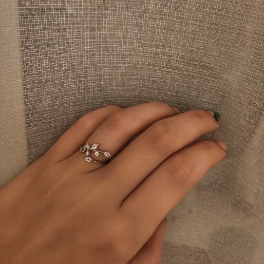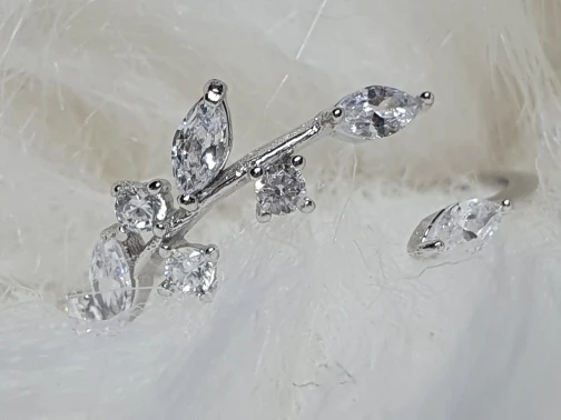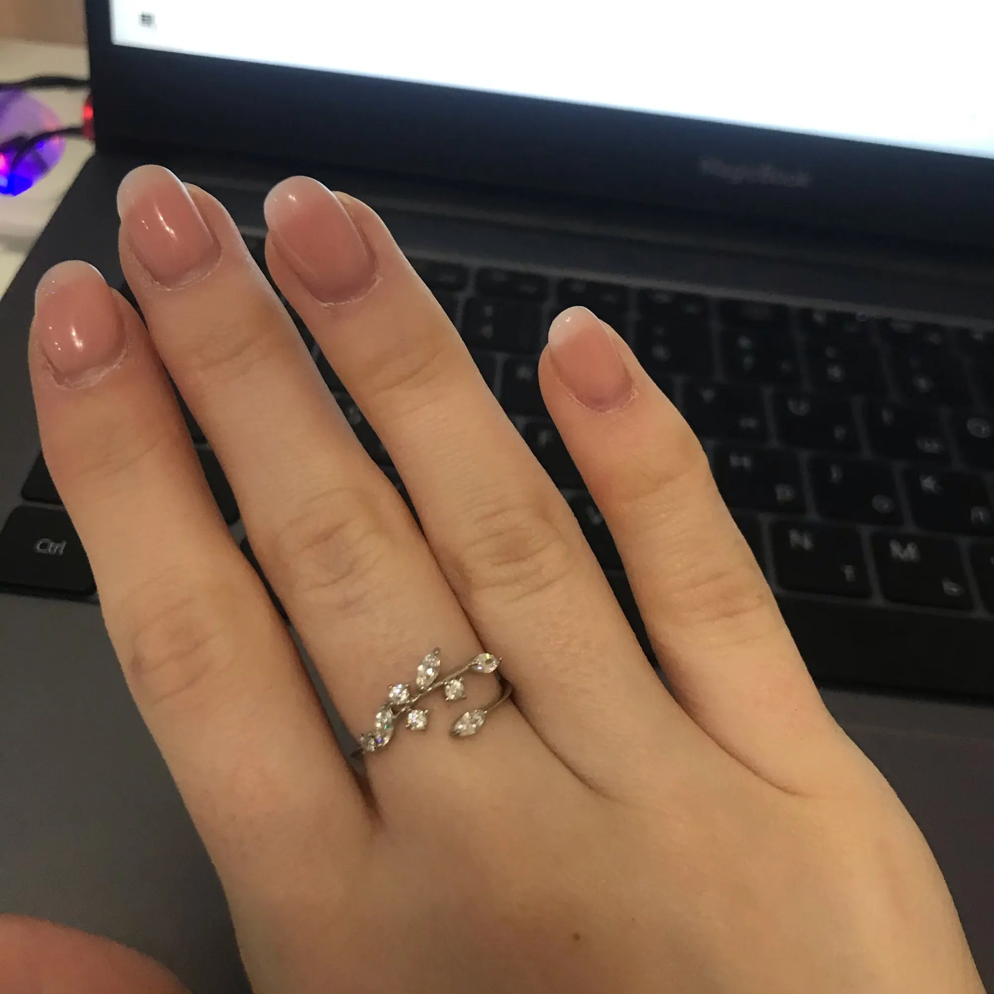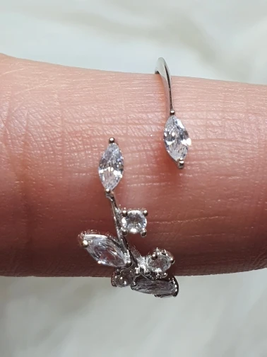 Размер можно отрегулировать, смотрится очень нежно и дороже своей цены. Доставка долгая. Трек не отслеживался. Колечко пришло в комплекте с коробочкой, тряпочкой. Камешки все на месте.