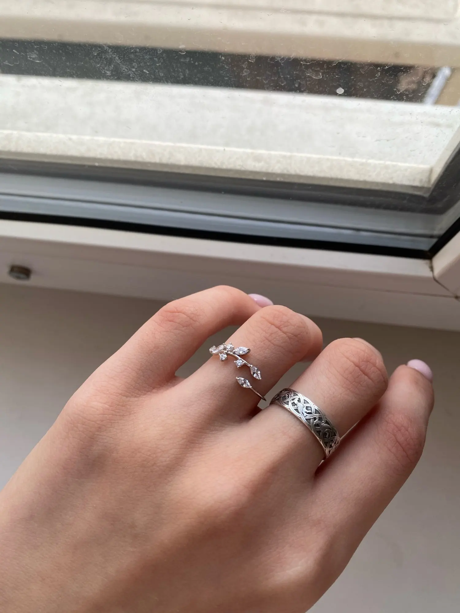 Довольно широкое колечко с регулируемым размером, подойдет даже на широкие пальцы.