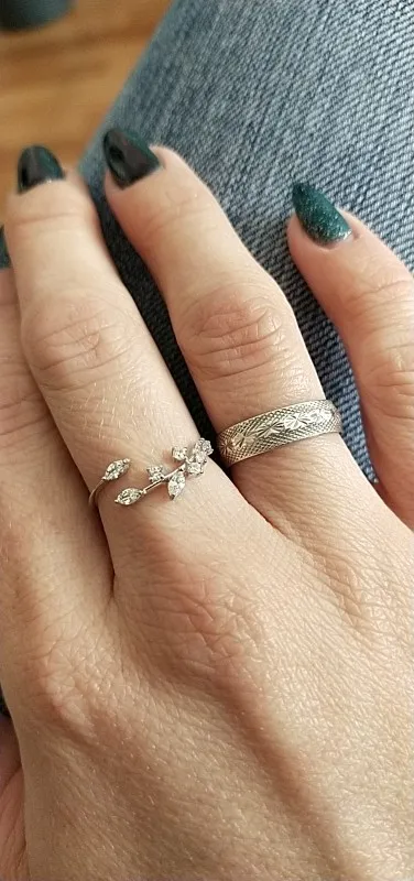 Красивый, очень деликатный. Я также получил подарок. Моя единственная жалоба в том, что я заказал два кольца одного размера, но зеленый цвет больше, и он слишком свободный для меня.