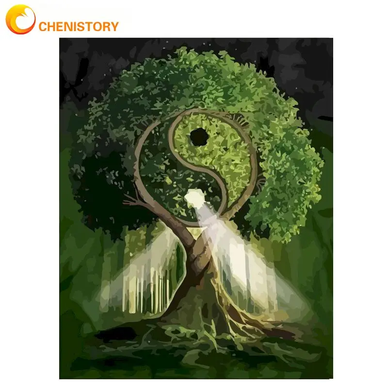 CHENISTORY масляные краски по номерам для взрослых зеленое дерево в...
