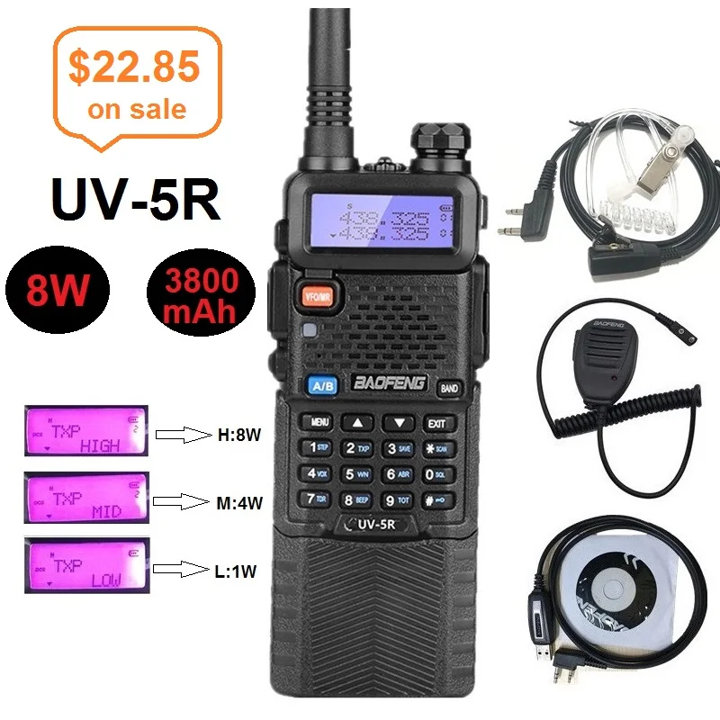 Рация BAOFENG 8 Вт, 10 км, двухсторонняя радиостанция УВЧ, УКВ, двухдиапазонный приемопередатчик, Любительский радиоприемник, для охоты, Woki Toki UV 5R