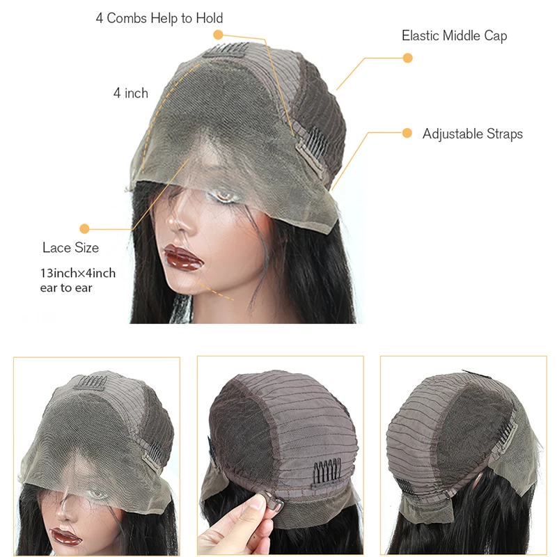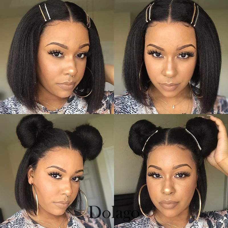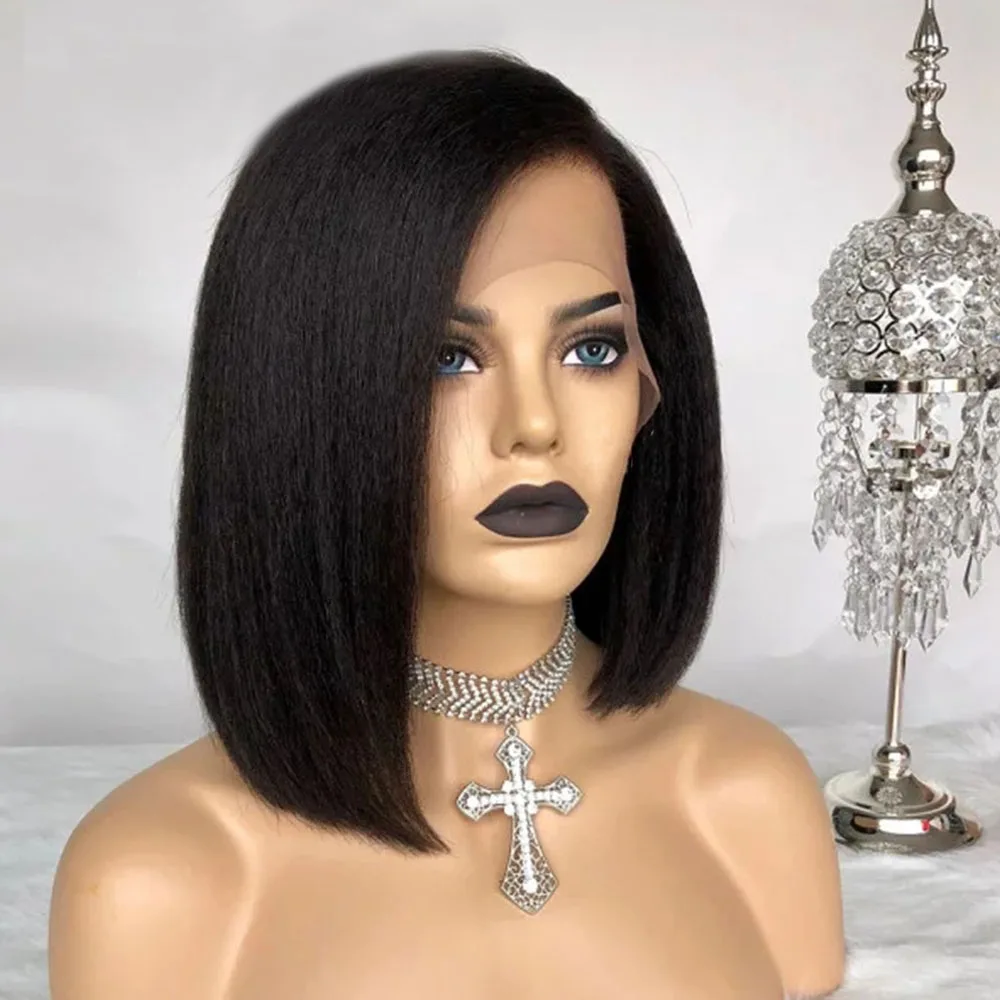 Парики из натуральных кудрявых прямых волос 13x4, плотность 250%, крупные Бразильские короткие парики без клея