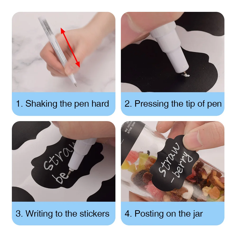 -Просто очистите и приклейте этикетку к вашему контейнеру. Затем используйте любой вид мела, от обычного до жидкого мела, чтобы написать на этикетке.