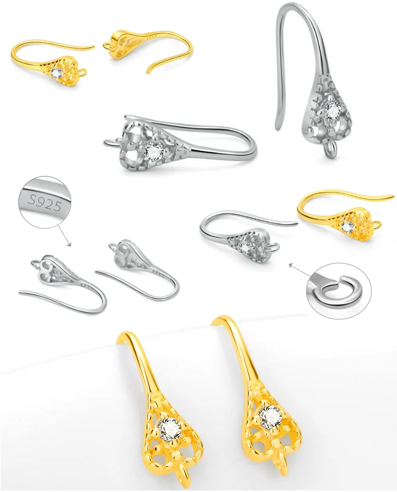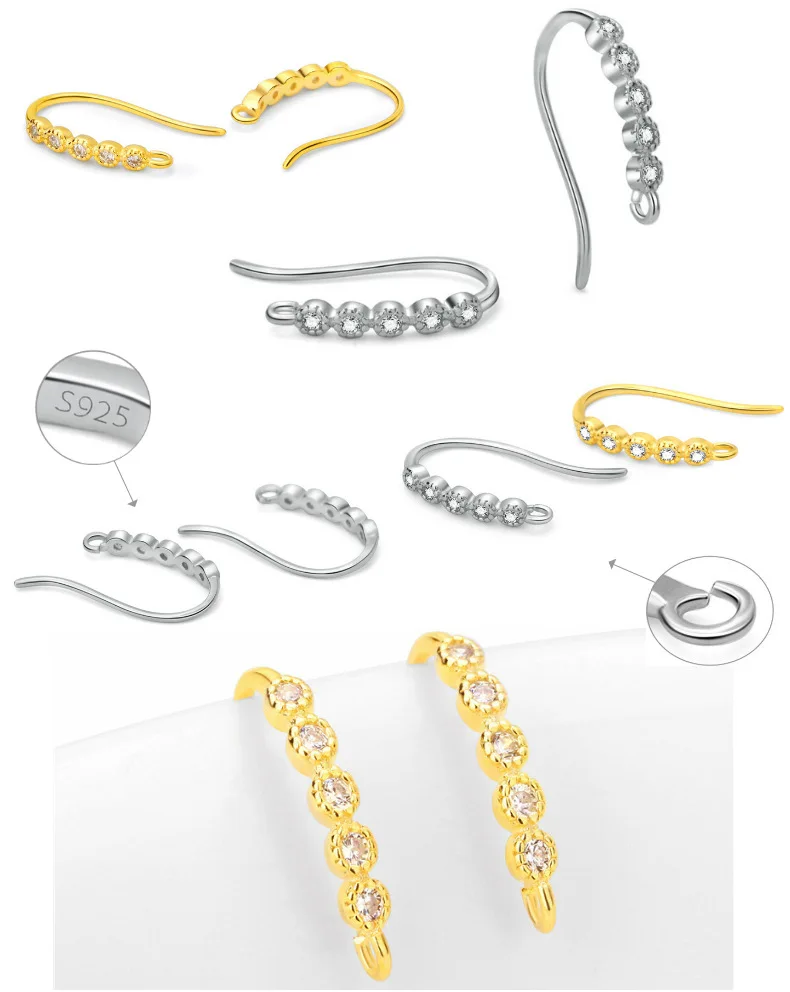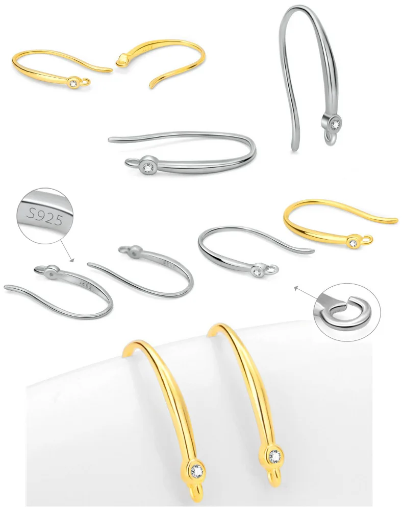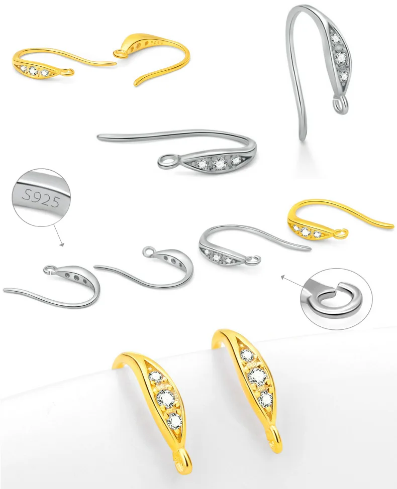 Крючок для ушей из настоящего стерлингового серебра 925 пробы, позолоченный, ручной, для изготовления ювелирных изделий, аксессуары