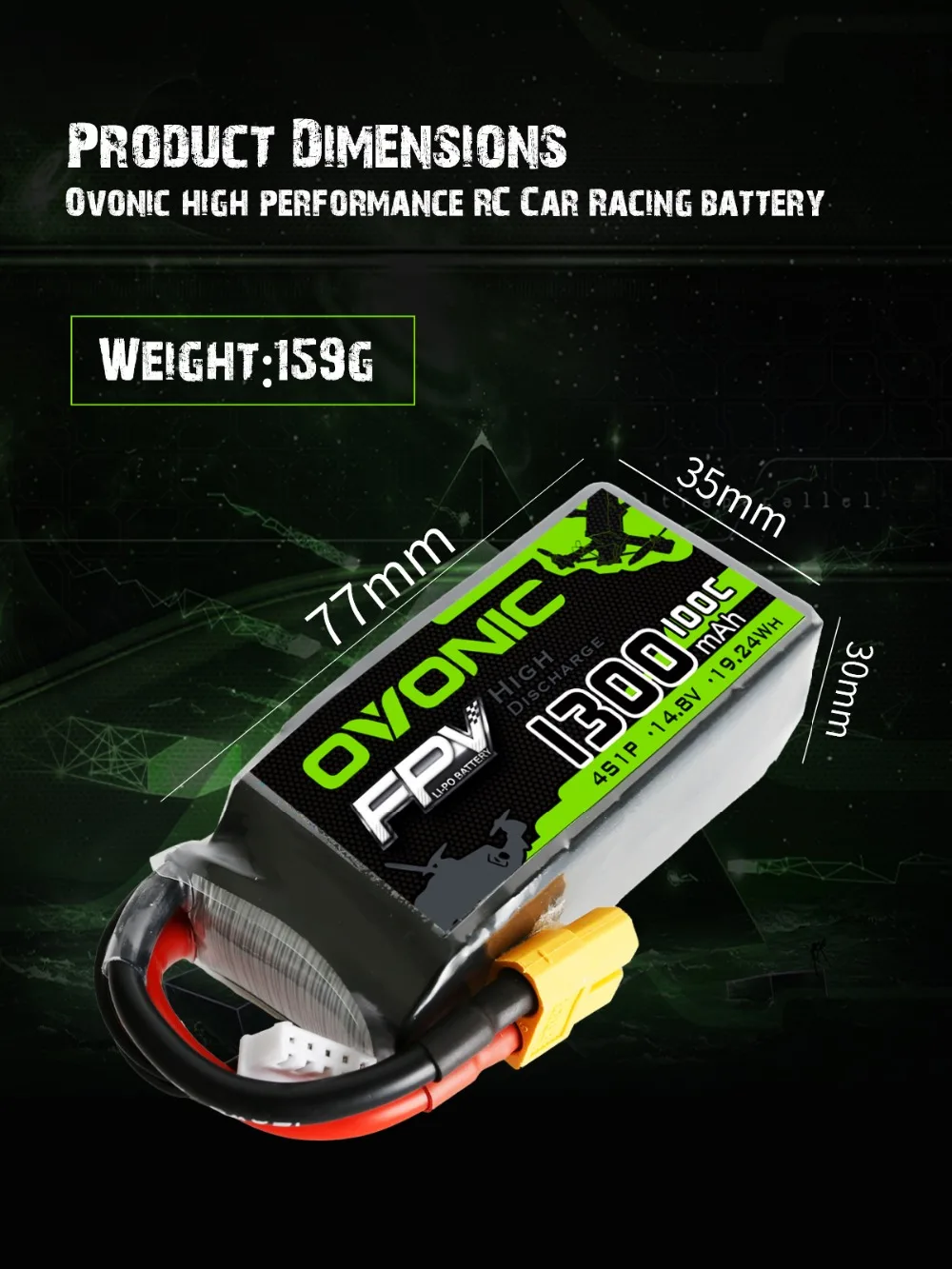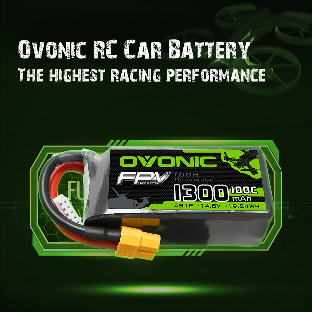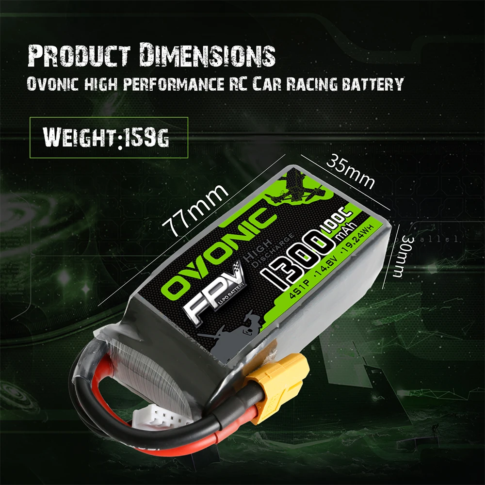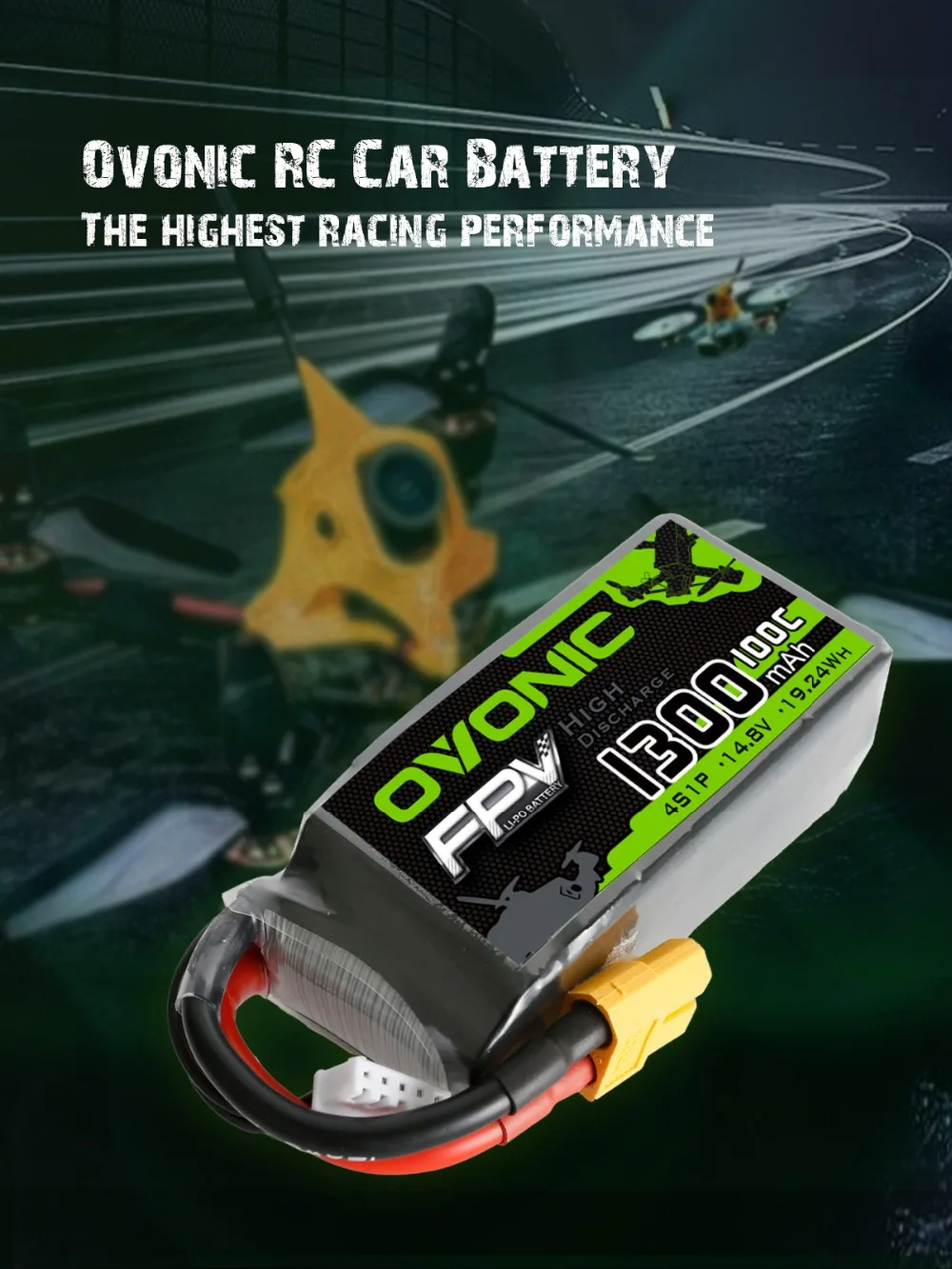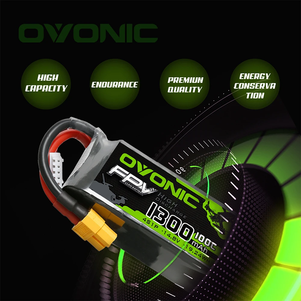 Аккумулятор OVONIC 14,8 в, 1300 мАч, 100C Max 200C Lipo 4S1P, с разъемом XT60 для 250 FPV кадров, радиоуправляемого дрона, Heli Quad Boat