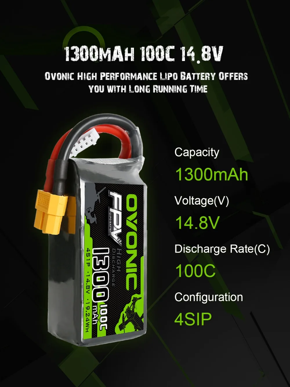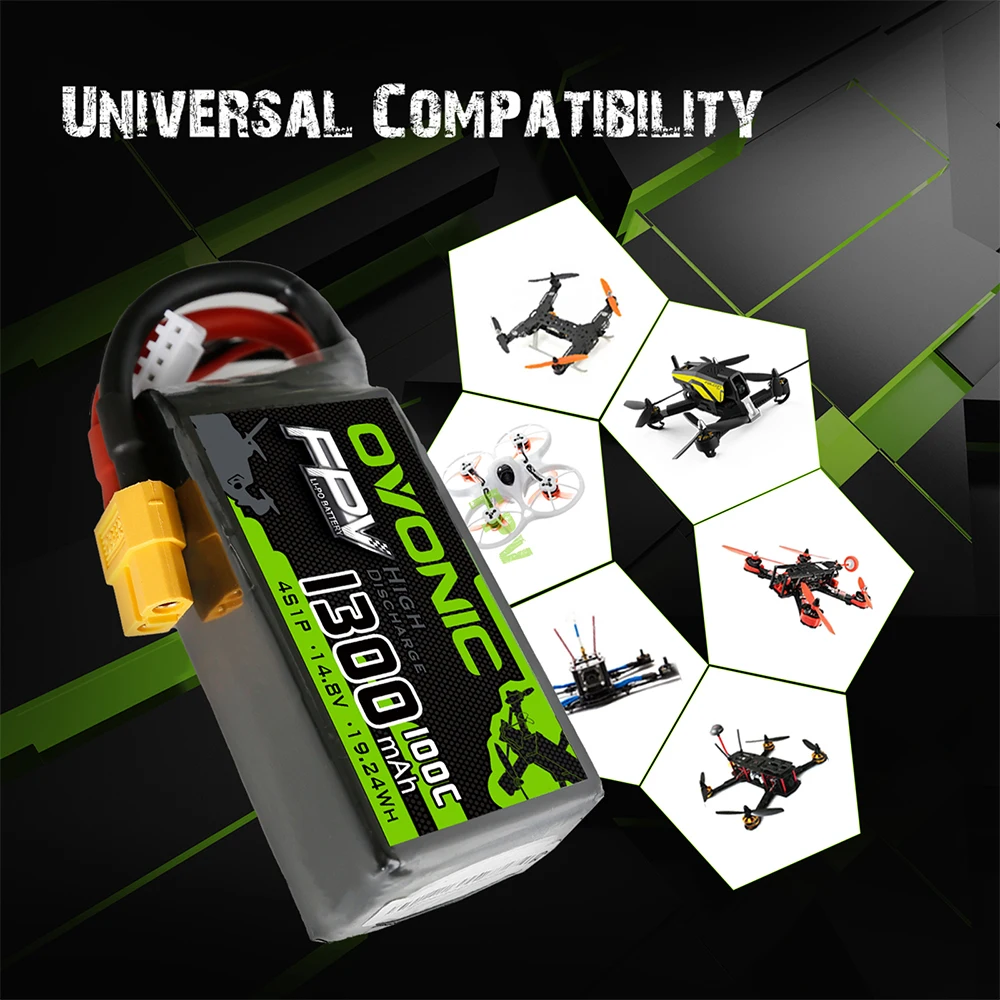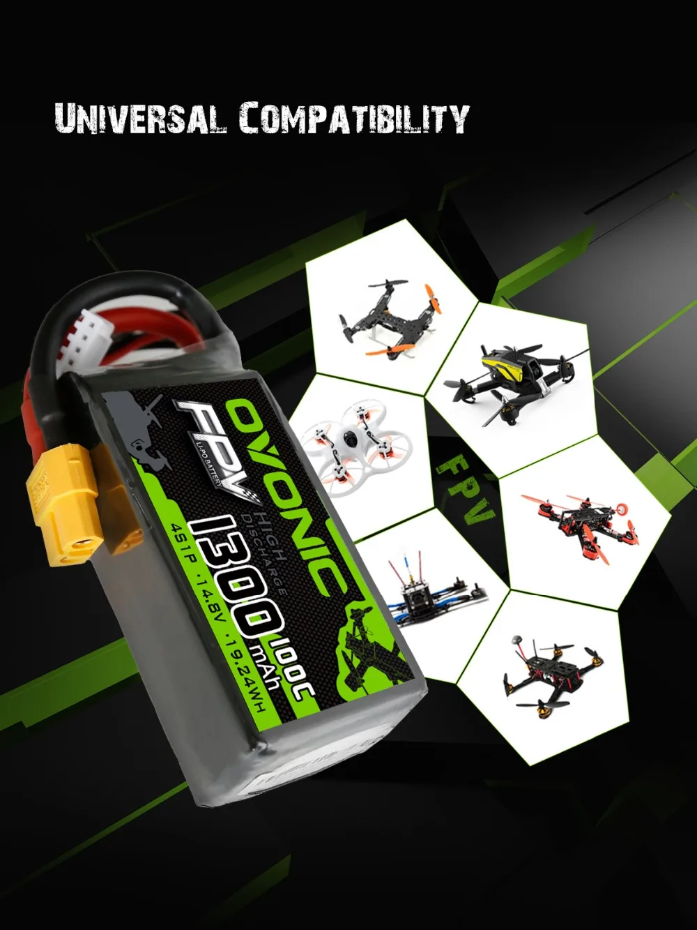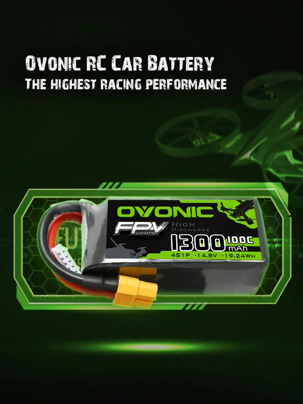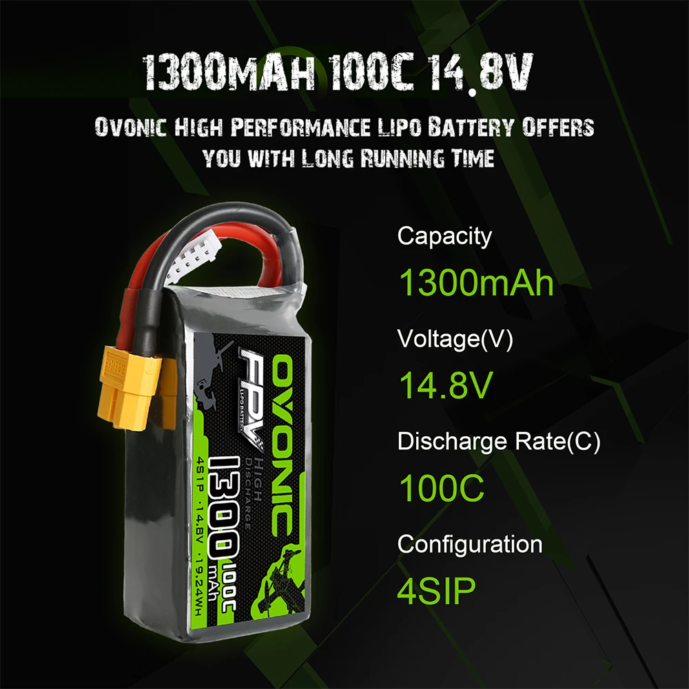 Аккумулятор OVONIC 14,8 в, 1300 мАч, 100C Max 200C Lipo 4S1P, с разъемом XT60 для 250 FPV кадров, радиоуправляемого дрона, Heli Quad Boat