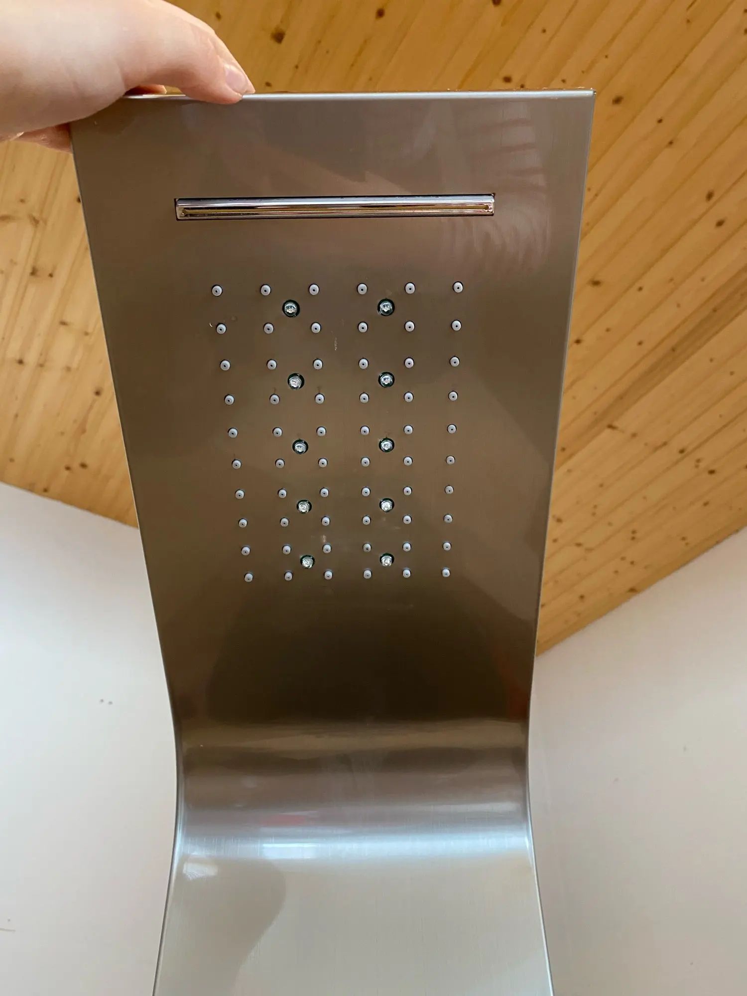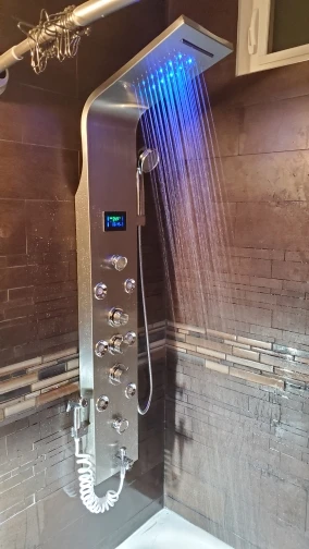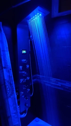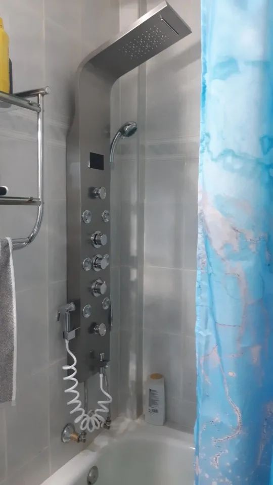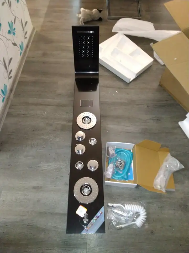 Отличная душевая панель. Доставка по России быстрая, около недели. Есть два но: 1. Одному ставить очень не удобно, нужен помощник. 2. У меня в частном доме вода из скважины, давление 1,5 - 3 бар, этого мало для боковых форсунок.