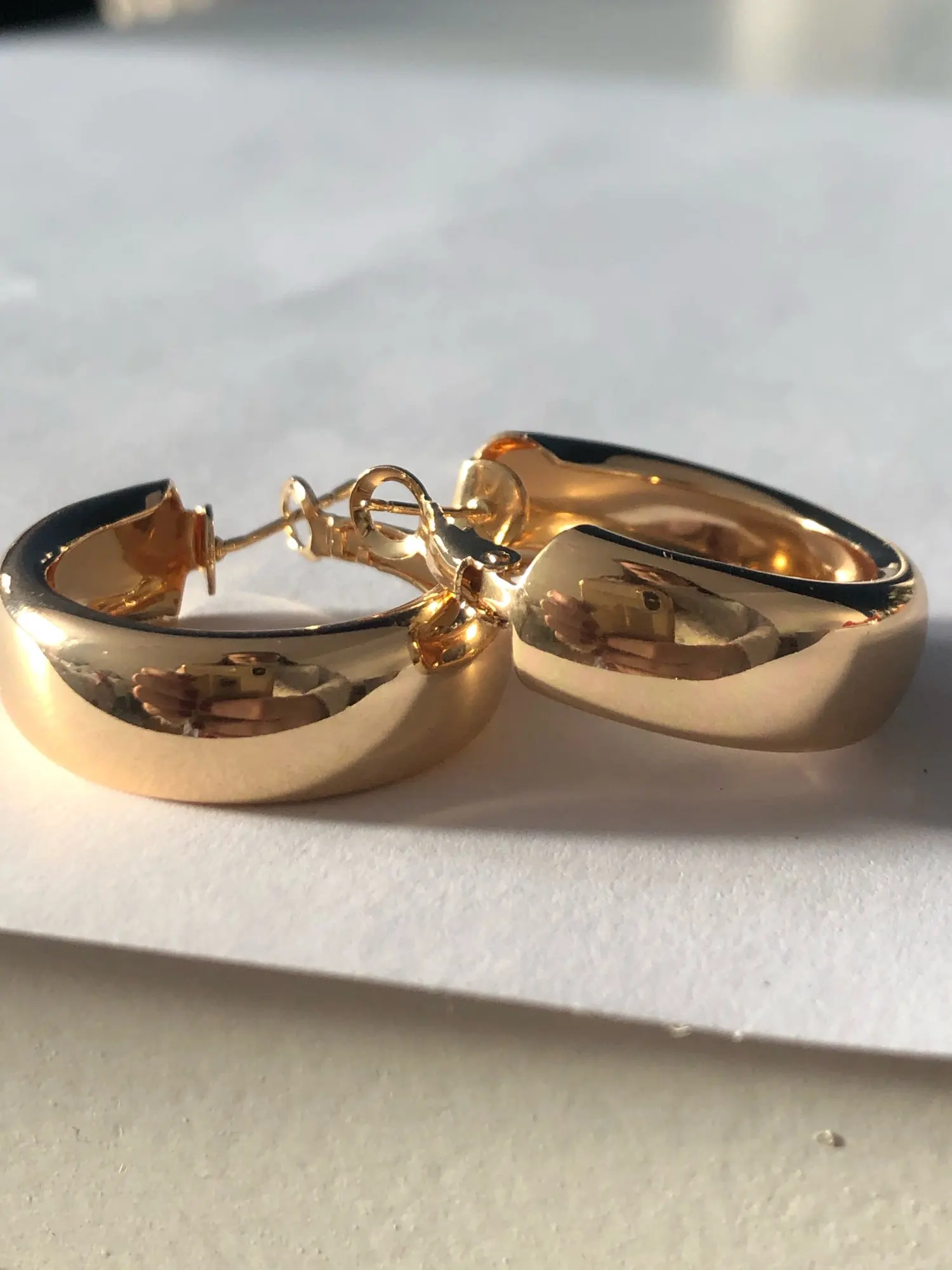 Хорошие массивные серёжки на каждый день. После 4 часов носки чувствуешь как начинает немного оттягивать ухо, но я привыкла носить массивные серьги. Метал легкий , тонкий. Золото в меру деликатное , не блистать очень нашло. К сожалению, в связи с пандемией , посылка шла 2,5 месяца , но продавец предупредил об опоздании и продлил срок защиты.