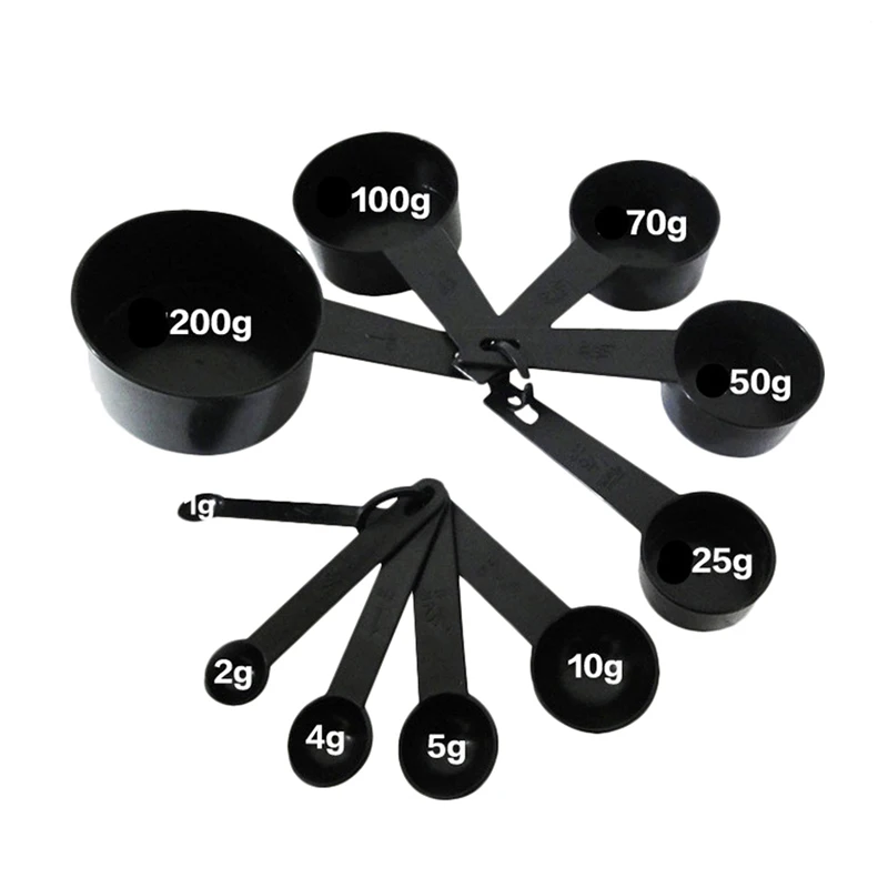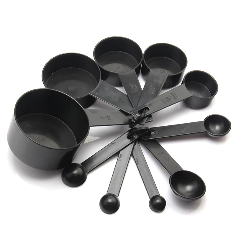 Черные мерные чашки, пластиковые, мерная ложка лопатка, 10 шт.