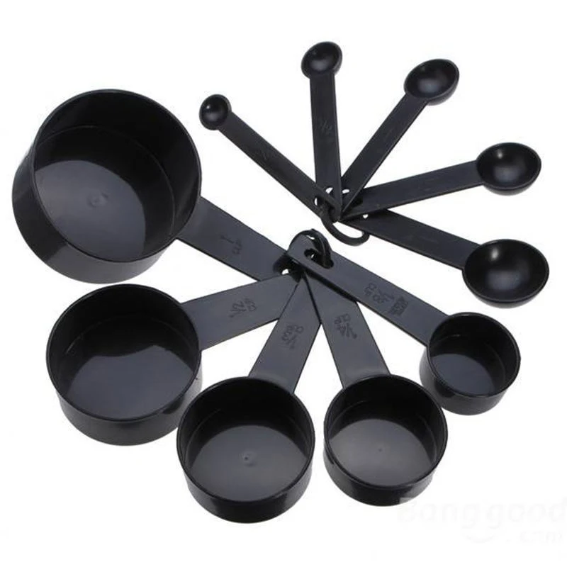 Новинка 10 шт. черные пластиковые стильные мерные ложки, чашки, наб...