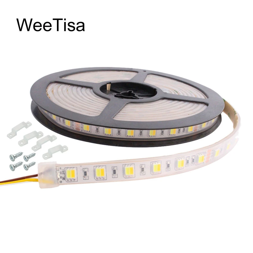 Светодиодный ленточный светильник CCT с регулируемой яркостью SMD 5050 5 м WW CW Цветовая температура регулируемый IP67 водонепроницаемый гибкий DC 24V 12V Светодиодная лента полоса