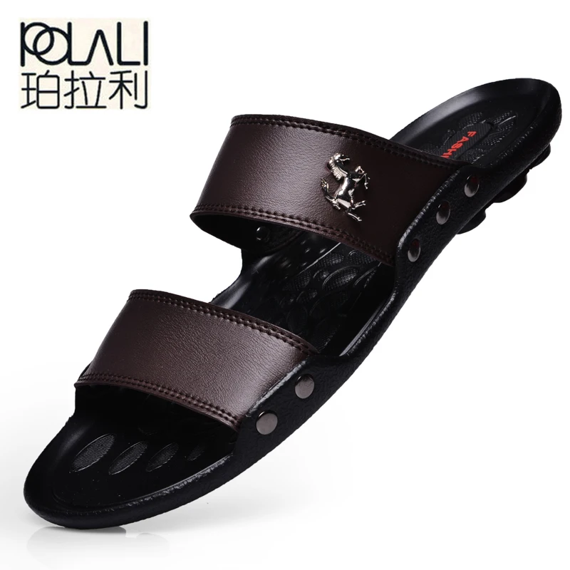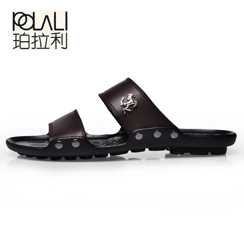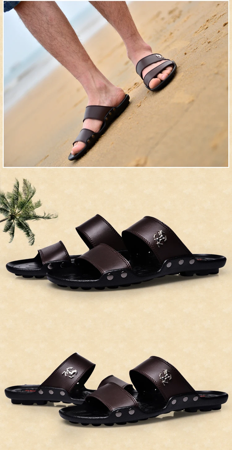 Мужские кожаные сандалии известного бренда, коричневые повседневные шлепанцы, пляжная обувь, для лета, 2022