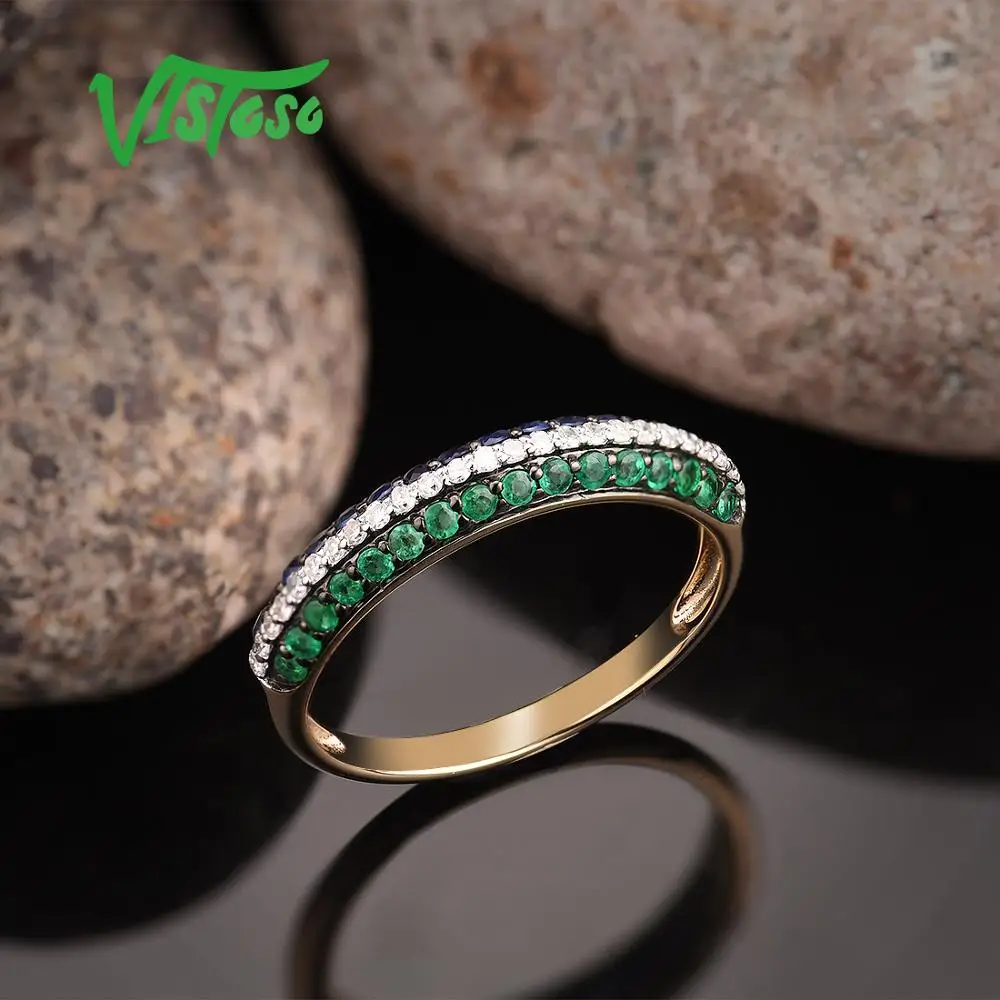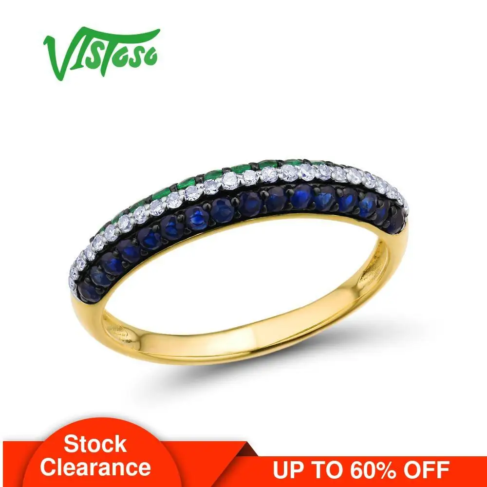 Женское золотое кольцо VISTOSO, обручальное кольцо из желтого золота 14 к 585 пробы с синим сапфиром и изумрудом