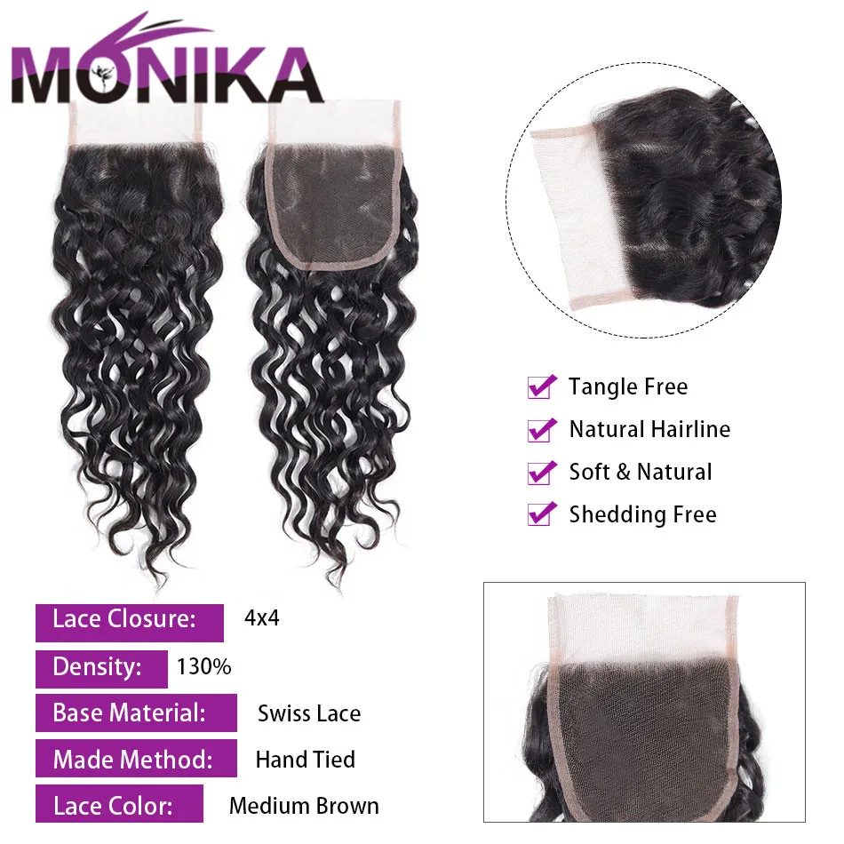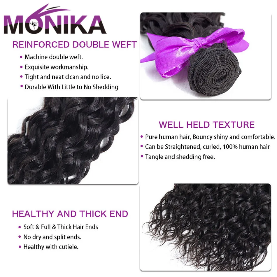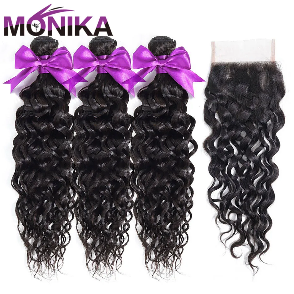 Monika волосы натуральные волнистые пучки воды с закрытием влажные и волнистые не Remy человеческие волосы плетение 3 пучка с закрытием перуанские волосы