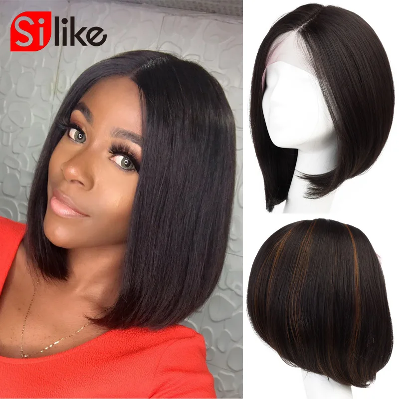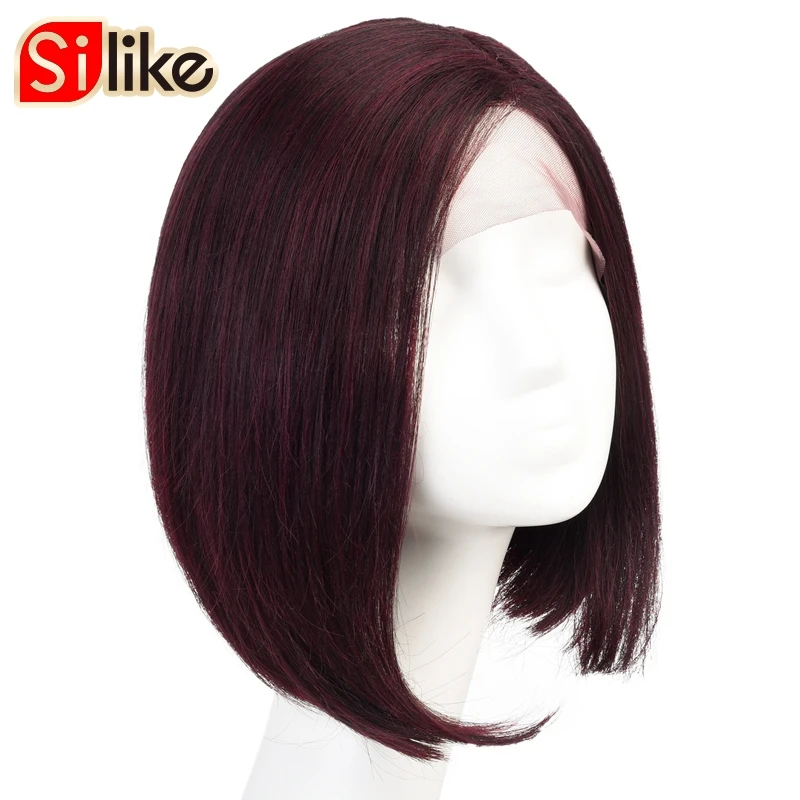 Прямые парики боб Silike с эффектом деграде, синтетические парики на фронтальной сетке, термостойкие волосы, парики на сетке для женщин