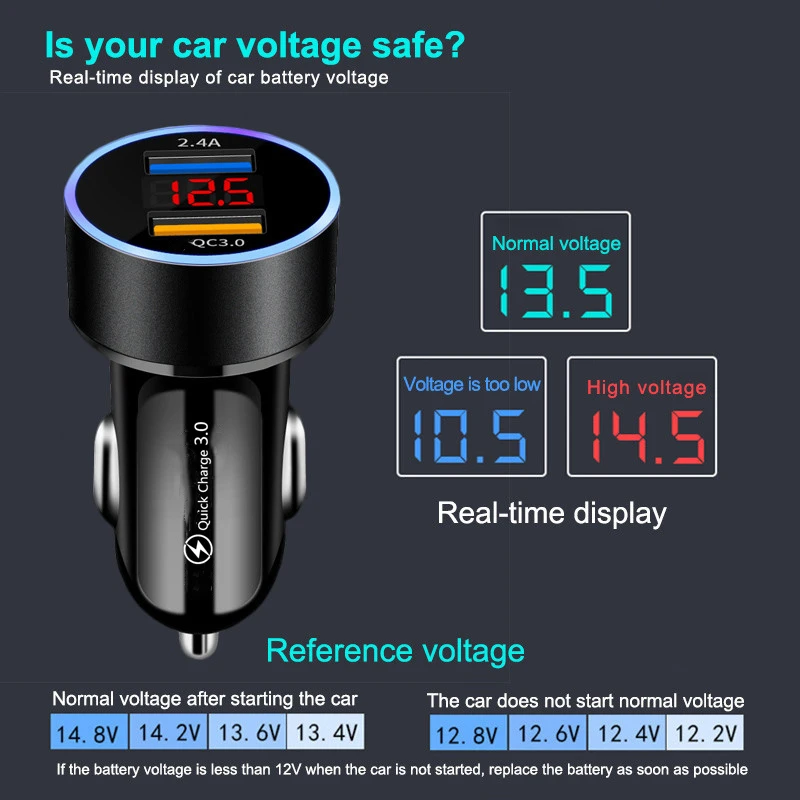 Автомобильное зарядное устройство с двумя USB-портами и цифровым дисплеем