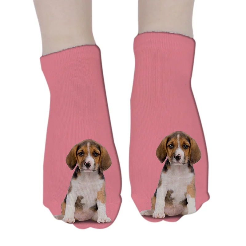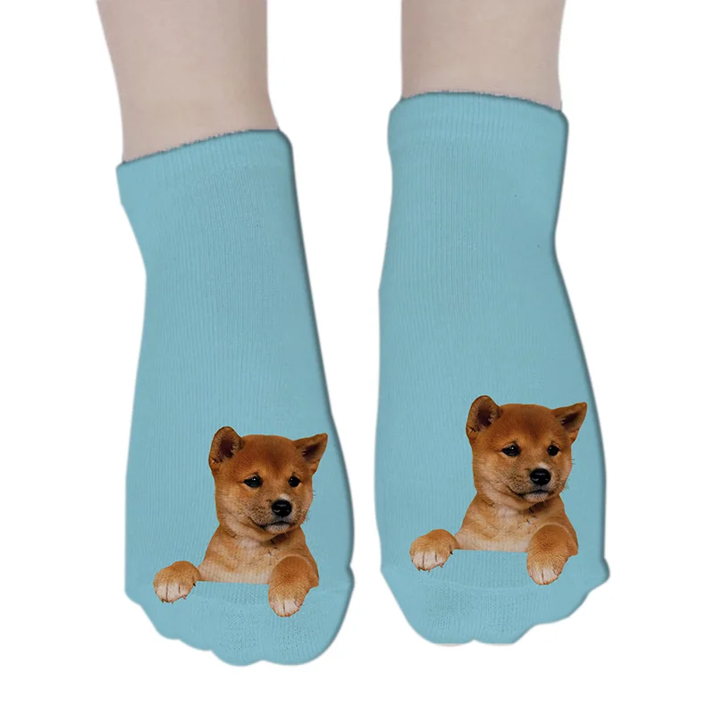 Новые забавные женские носки с 3D принтом, милые рождественские короткие носки в стиле Харадзюку, милые разноцветные женские Носки с рисунком собаки