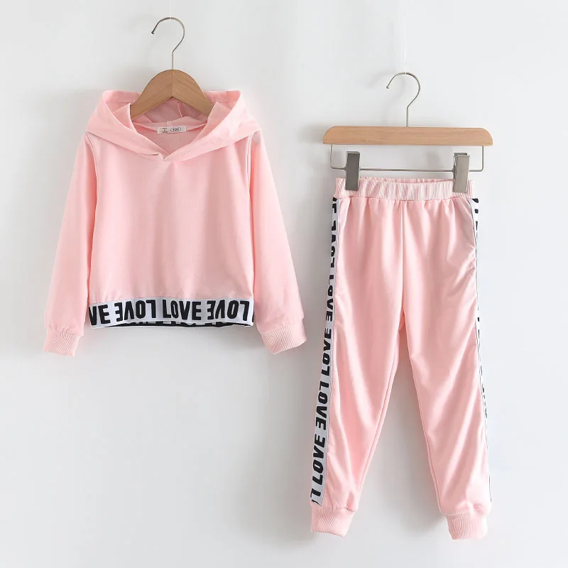 Спортивный костюм для девочек, весна-осень 2021, повседневная одежда для маленьких девочек, комплект одежды с капюшоном, комплекты одежды для детей 3, 4, От 6 до 8 лет